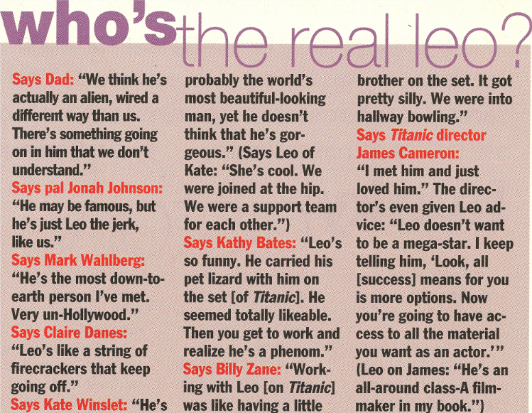 A video of Nancy O'Dell from Access Hollywood - there's a small section where she talks about some of the people she has interviewed..the part where she mentions Leo is close to the 3 min mark (little before)