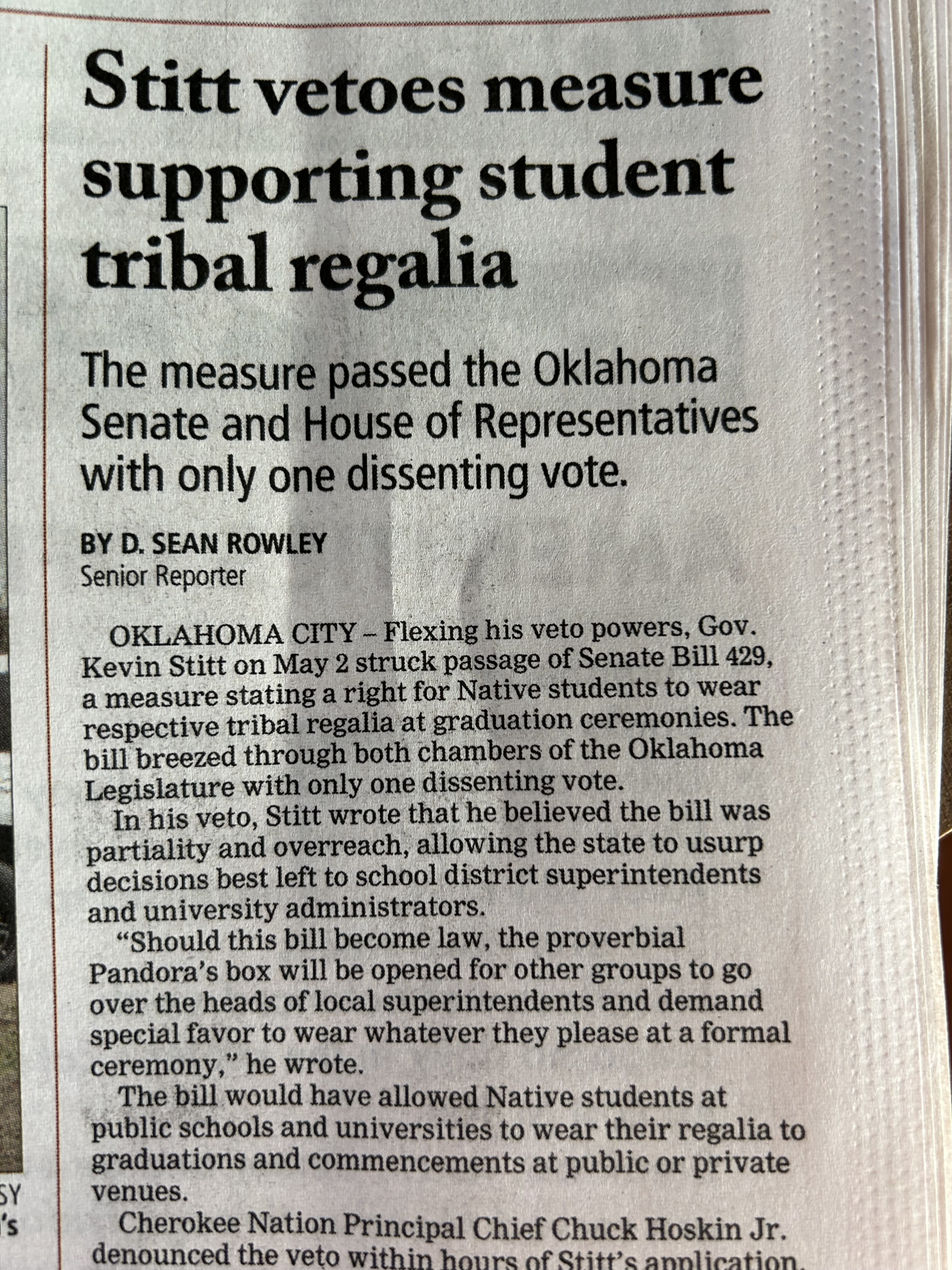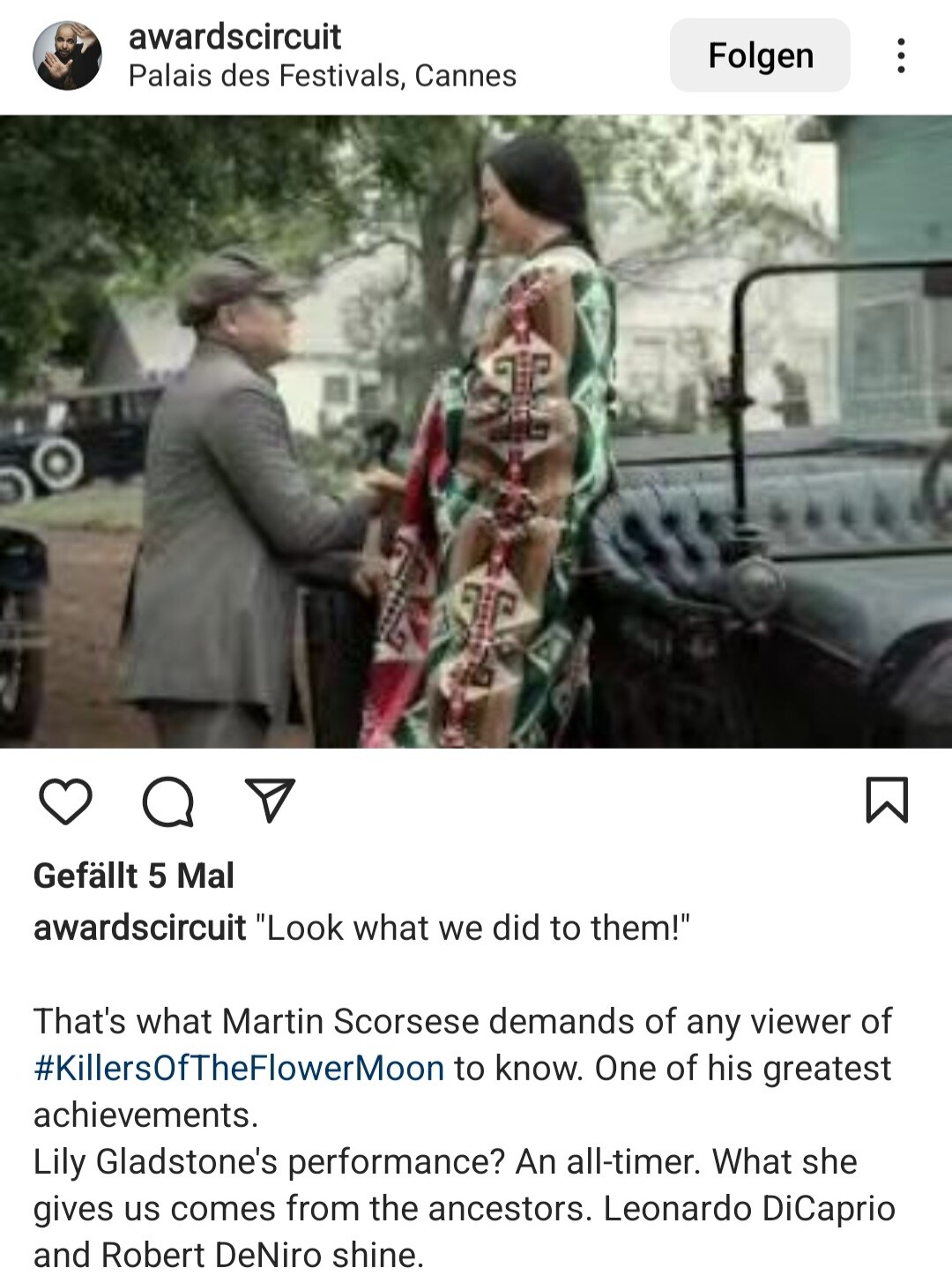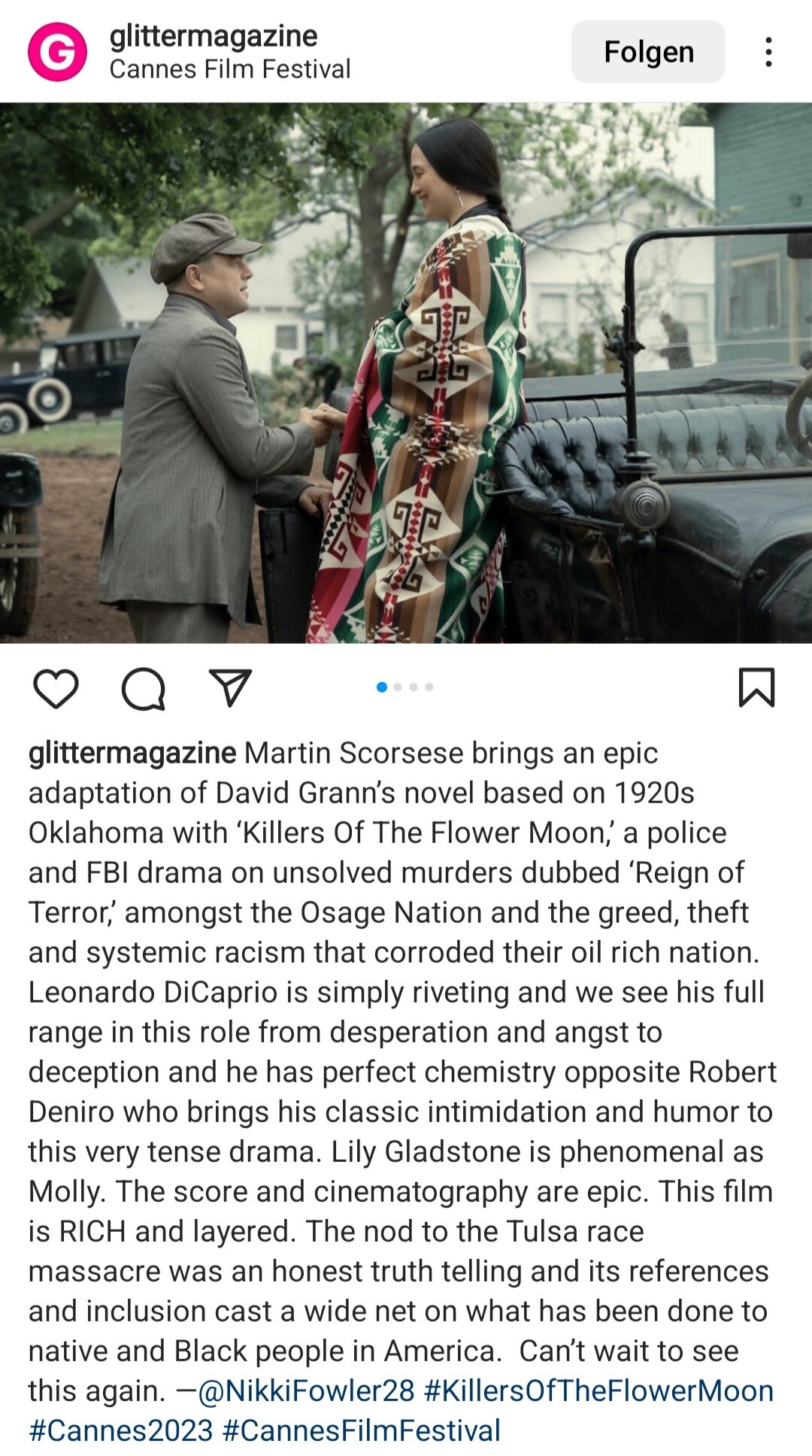Let’s not forget the reason behind the film. People who are not indigenous will view the film as history, but it’s not. It still occurs here in Oklahoma everyday. Part of my job is to complete competency evaluations on indigenous prisoners, and I see the corruption and injustice all similar to what is portrayed in this film. Even the little things like this article I saw when I got my mail today are designed to remind the indigenous how insignificantly we are viewed. It’s exciting to see Leo, but don’t forget the truth of the film.