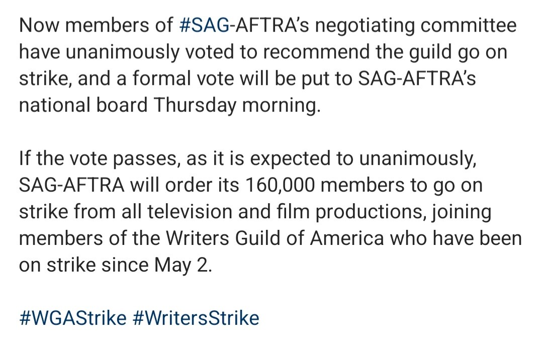 @BarbieErin so if the movie bombs they can now say it's the strikes fault. Without any screenings, promos, premieres etc this might even true.