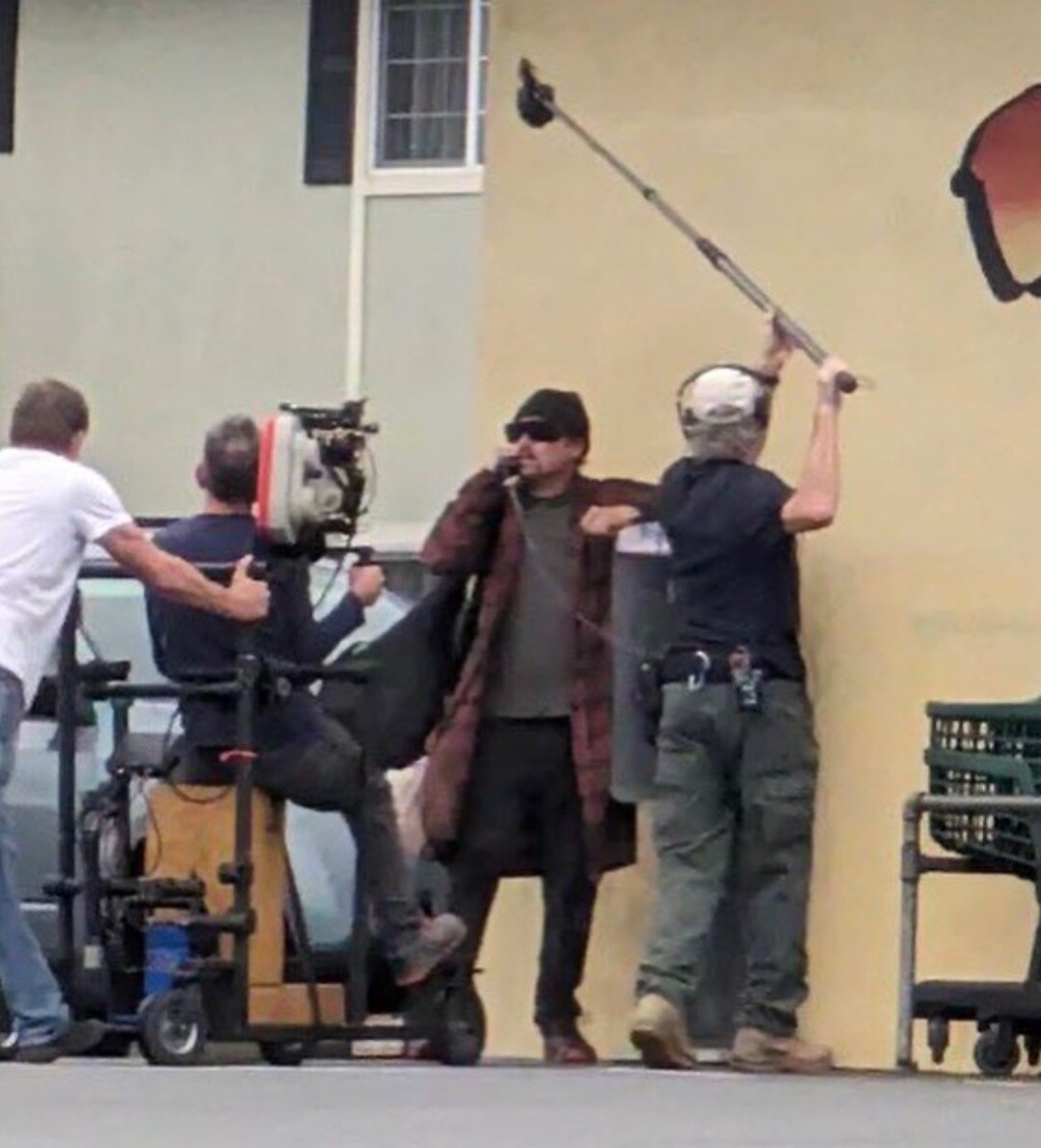 Video of Leo filming a scene today, we see him leave grocery store and run to pay phone