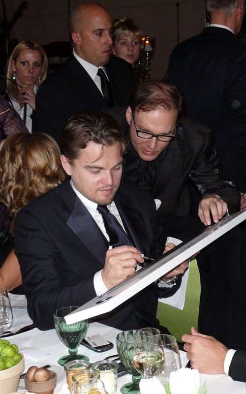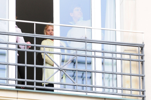 Leo DiCaprio's mother Irmalin and other family members at the balcony of their hotel in Berlin.
