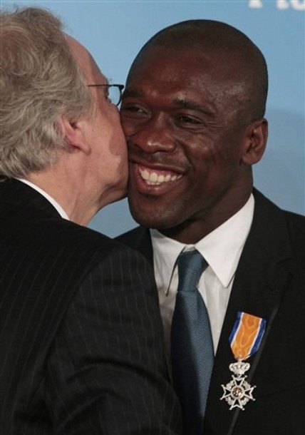 AC Milan midfielder Clarence Seedorf is appointed Knight in the Order of Orange Nassau by the Netherlands ambassador to Italy Alphonsus Stoelinga, in a ceremony in Rome Thursday, April 28, 2011, bestowed for his services to football and charity work. Seedorf is the only player to have won the Champions League with three different clubs _ Ajax in 1995, Real Madrid in 1998 and Milan in 2003 and 2007. In 2005, Seedorf founded the not-for-profit Champions for Children foundation.
