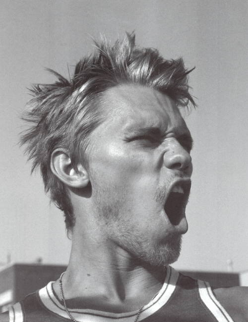 I like the gruff look on his face in some pics.