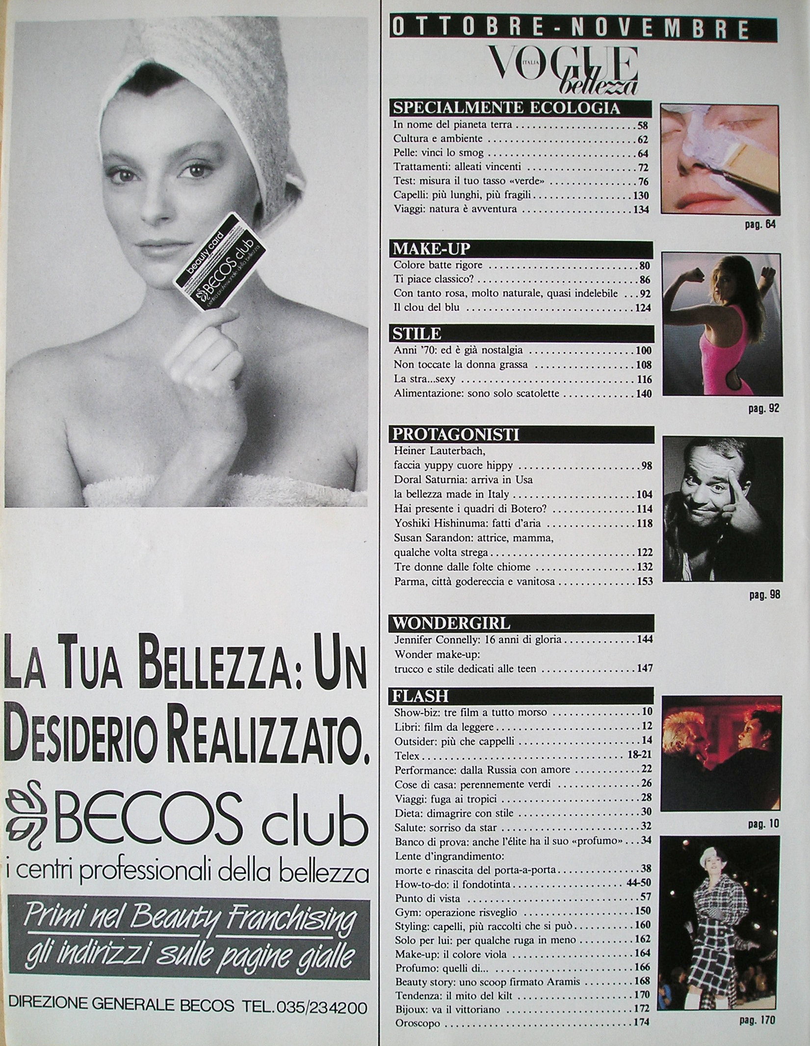 contents + "Con tanto rosa molto naturale quasi indelebile" by Arthur Elgort - italian VOGUE Bellezza October/November 1987 #30