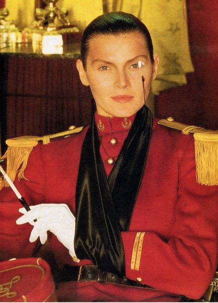 Great contributions, guys! And continuing with the androgyny... Sylvia Gobbel (Versace, Lavazza Calendar, Yves Saint Laurent, Big Nudes, Sie Kommen, etc): Viennese, one of the favorite models of Helmut Newton. In the picture (of Newton), wearing an official´s uniform of the French Cavalry at the Hotel Paris in Monaco. More images on her personal website.