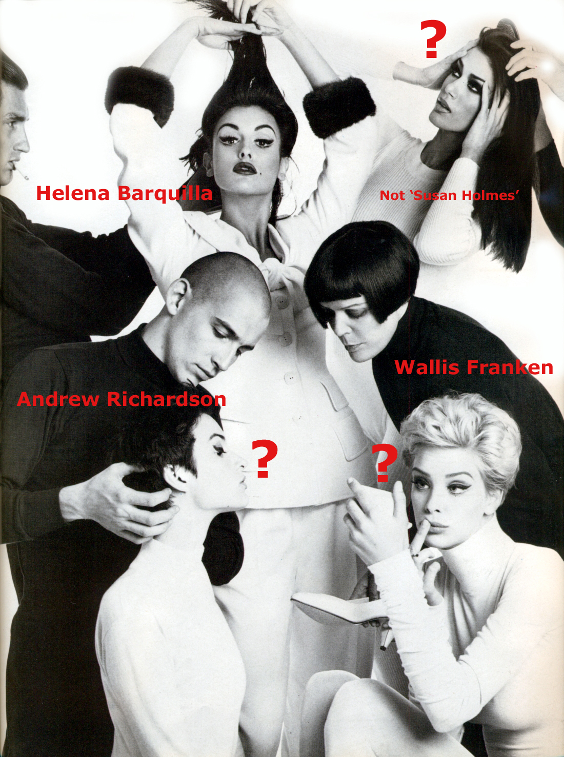 but, anyone could help me to identify the models with the question mark? (this is an editorial by Steven Meisel for Vogue Italia, July 1991). Thanks in advance.