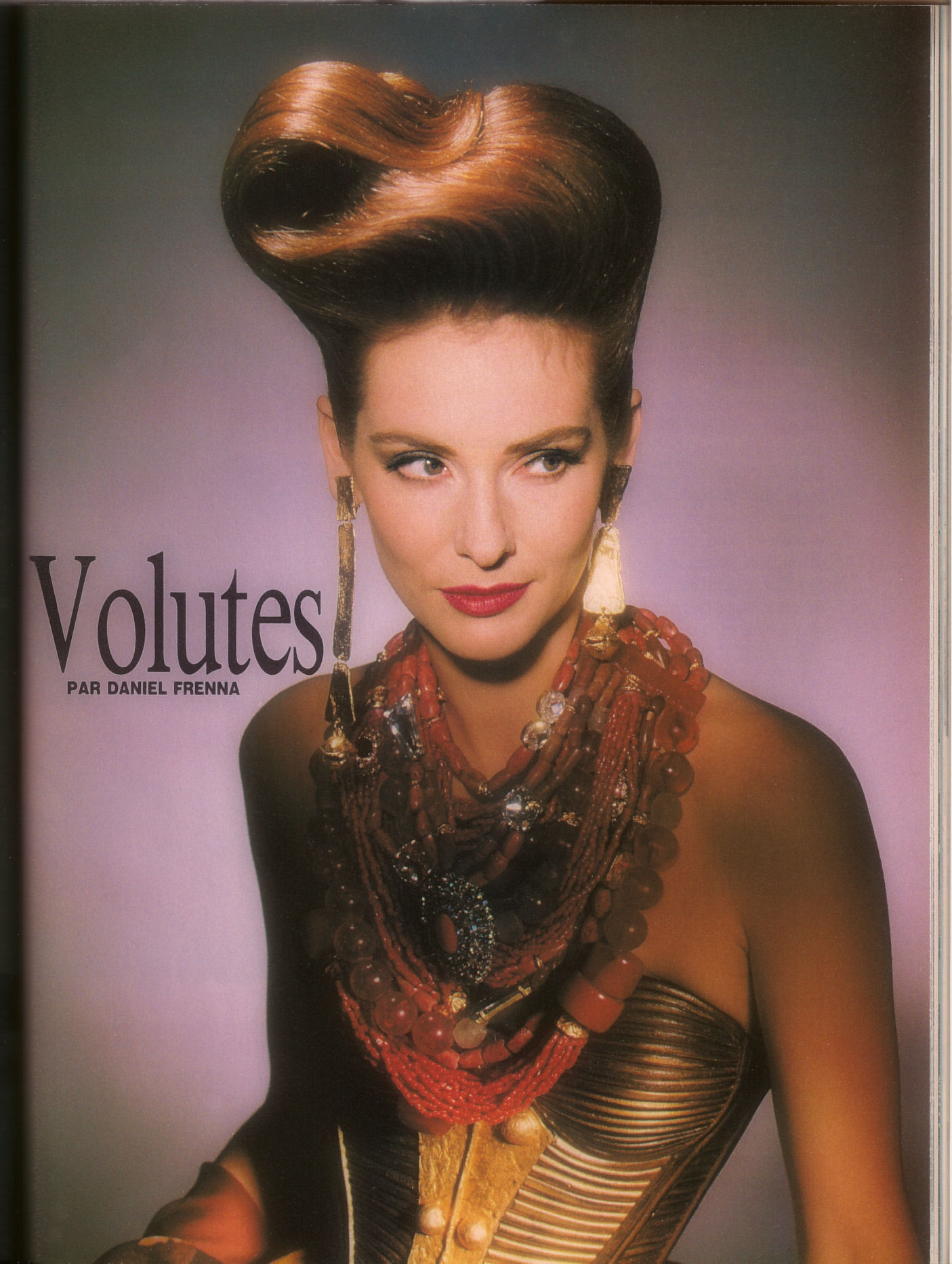 Coiffure de Paris,n.962-December 1992Robe et bijoux Christian Lacroix,maquillage Diane Kristel,coiffure Daniel Frenna.