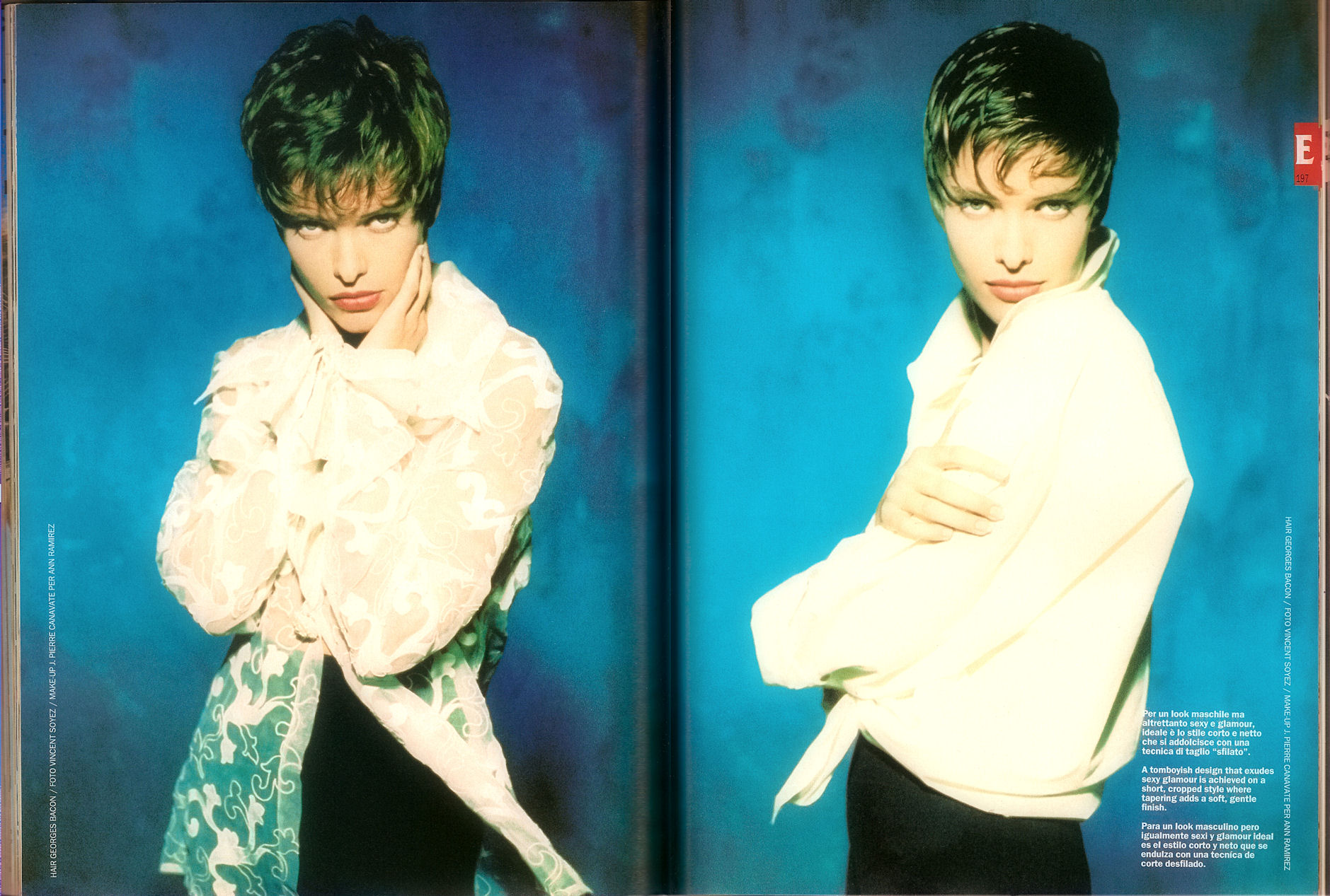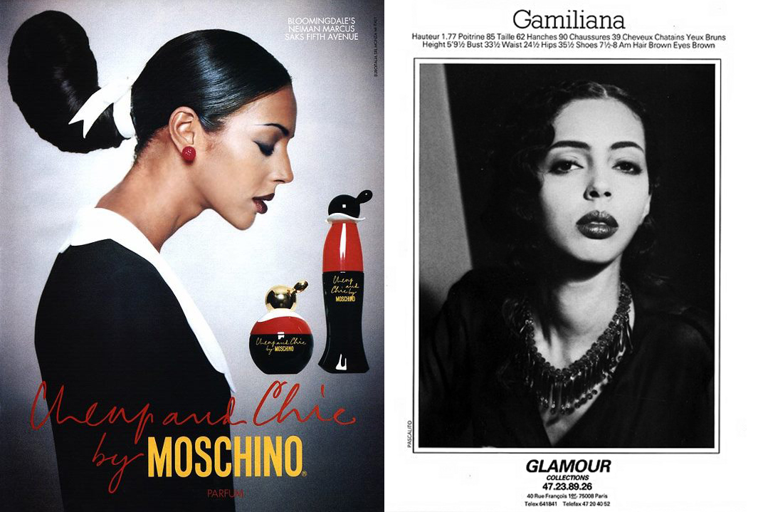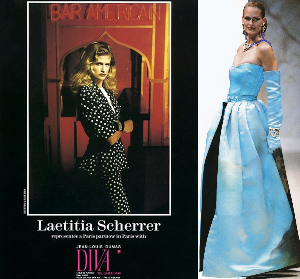 Laetitia Scherrer, daughter of the Haute Couture designer Jean-Louis Scherrer; the redhead ‘Bobby’; the Brazilian model Ceyla Lacerda; Gamiliana, famous image -characterized as Olive Oyl- of the perfume "Cheap & Chic" of Moschino (she also appeared in Robert Altman's film, "Prêt-à-porter" (1994), as herself); the Muscovite Natalia Kretova: she made many fashion shows for Yves Saint-Laurent.