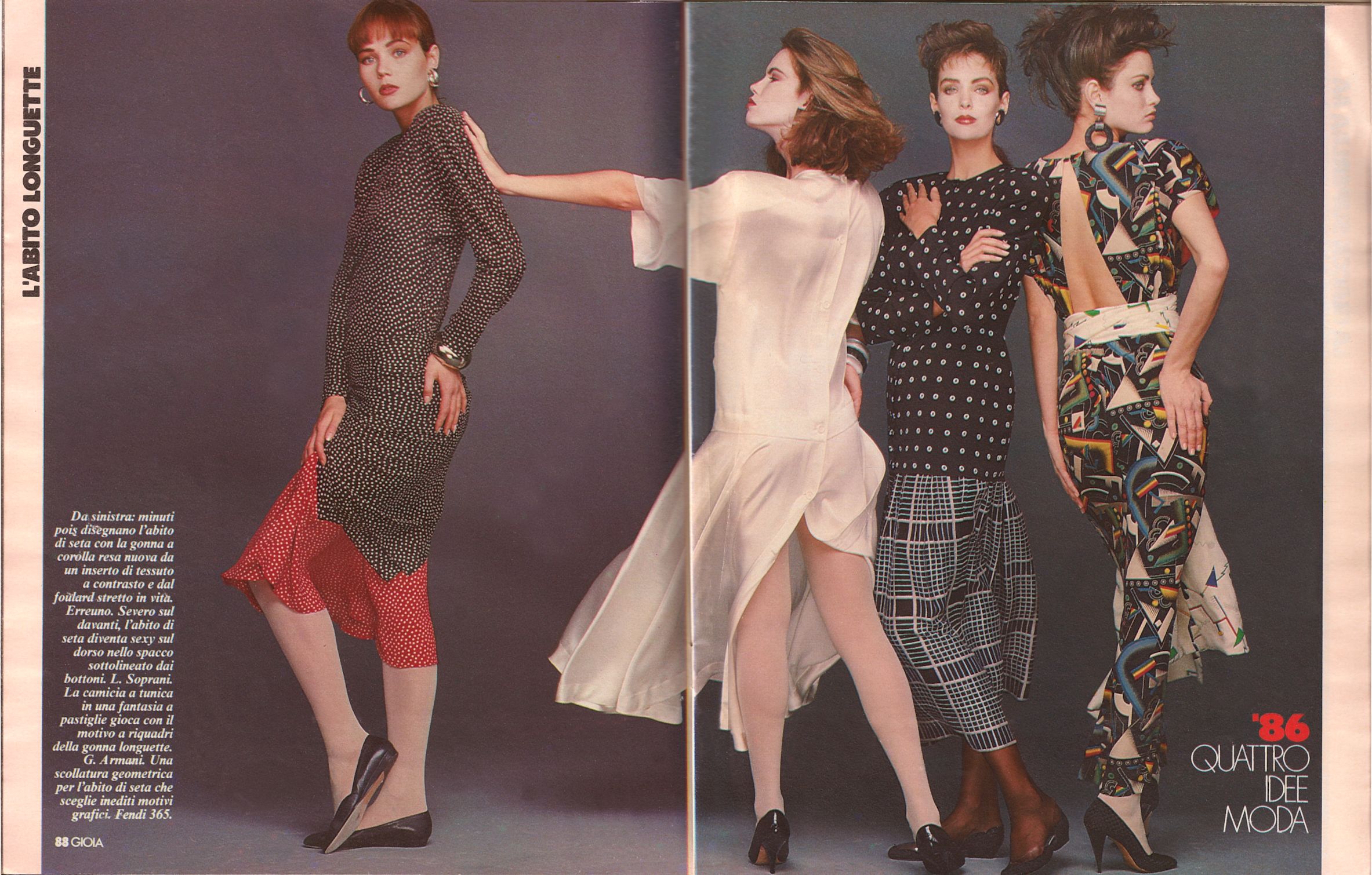 :morning: Four mysterious girls wearing Valentino,Ferre,Versace and other big names from the Penisola.Their poses are pure Eighty style ![]()