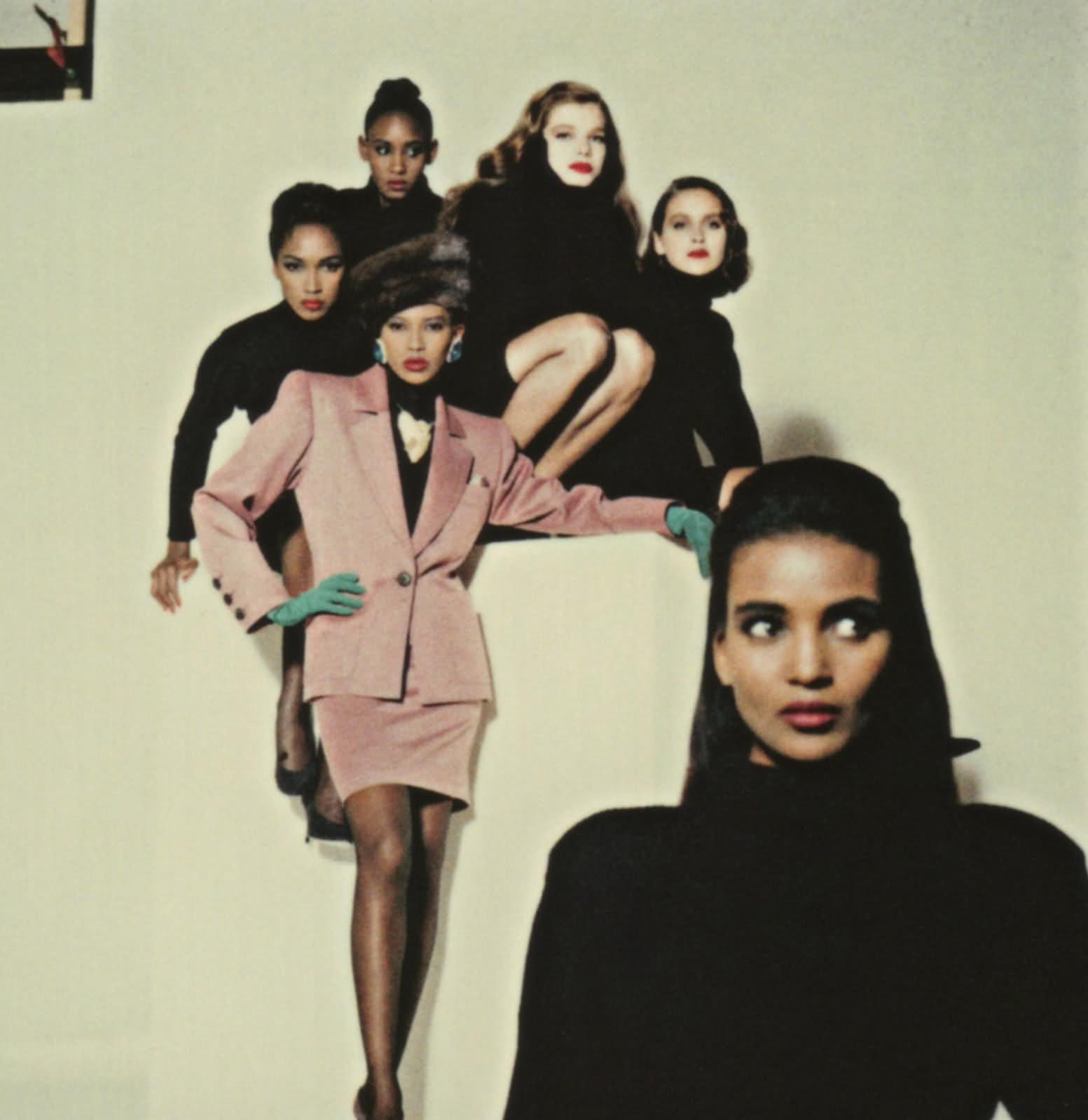 On 3/11/2012 at 9:00 PM, prejean said:YSL Ready-to-wear FW'87/88 campaign: Katoucha Niane, Amalia Vairelli (suit jacket pink), Hedia Vairelli? (behind, with swan neck jersey; sister of Amalia), Cordula Reyer, Alda Balestra? (I'm not sure, if anyone can help me to identify her...) and Khadija Adam (medium close-up). Photo: Helmut Newton.
