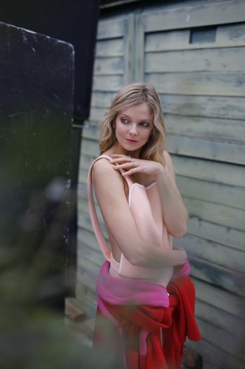 That color looks amazing on her and that leg tease!