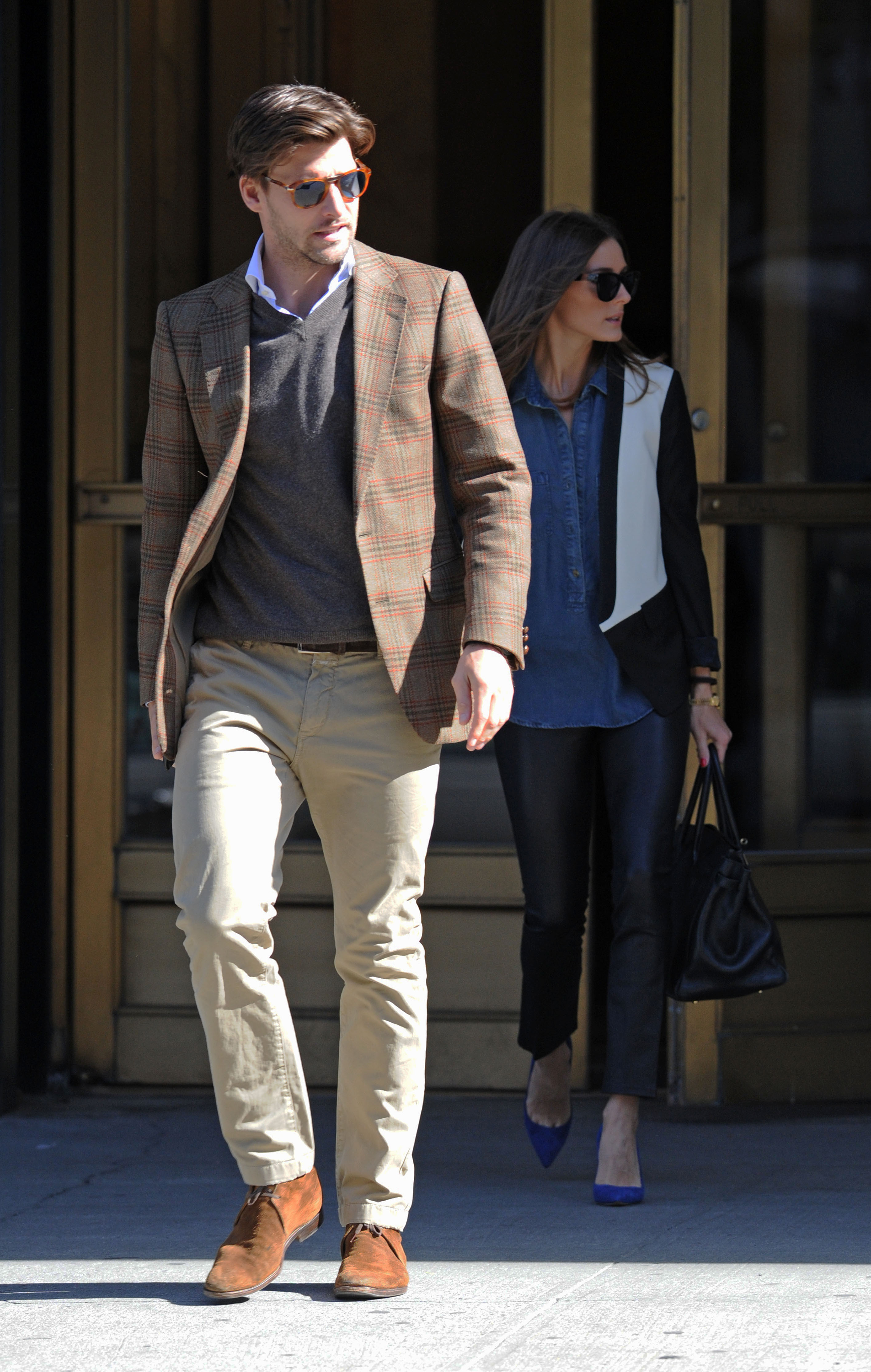 Olivia Palermo and Johannes Huebl hold hands as they leave Gemma Restaurant at the Bowery Hotel after dining out in the East Village.