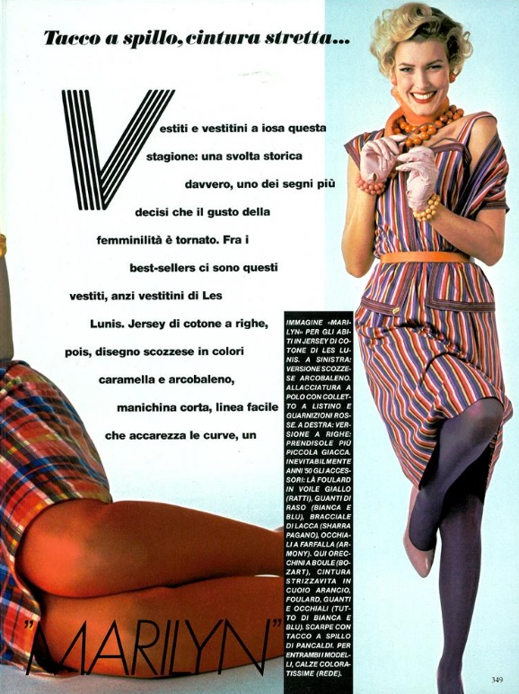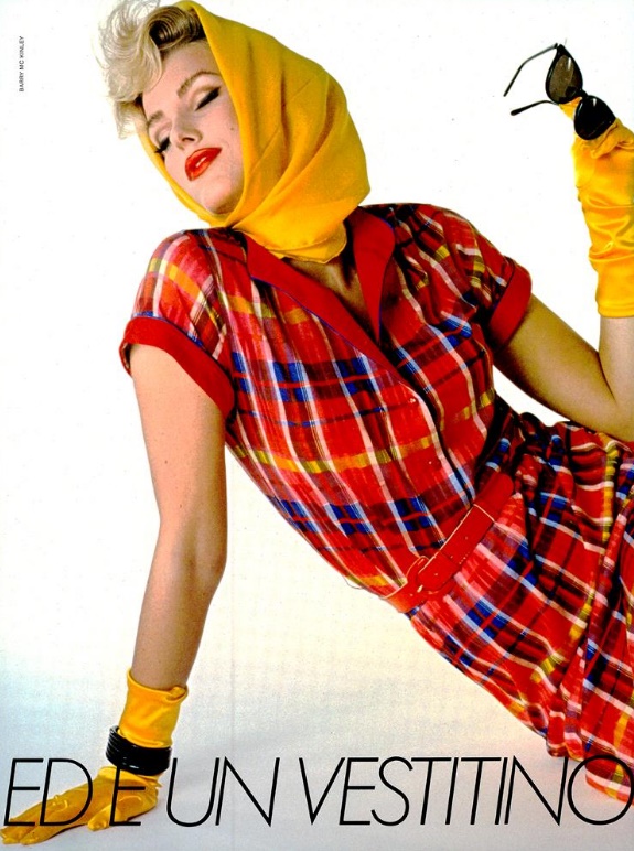 "ed e un vestitino "marilyn"" VOGUE Italia, April 1983 Photographer: Barry McKinley