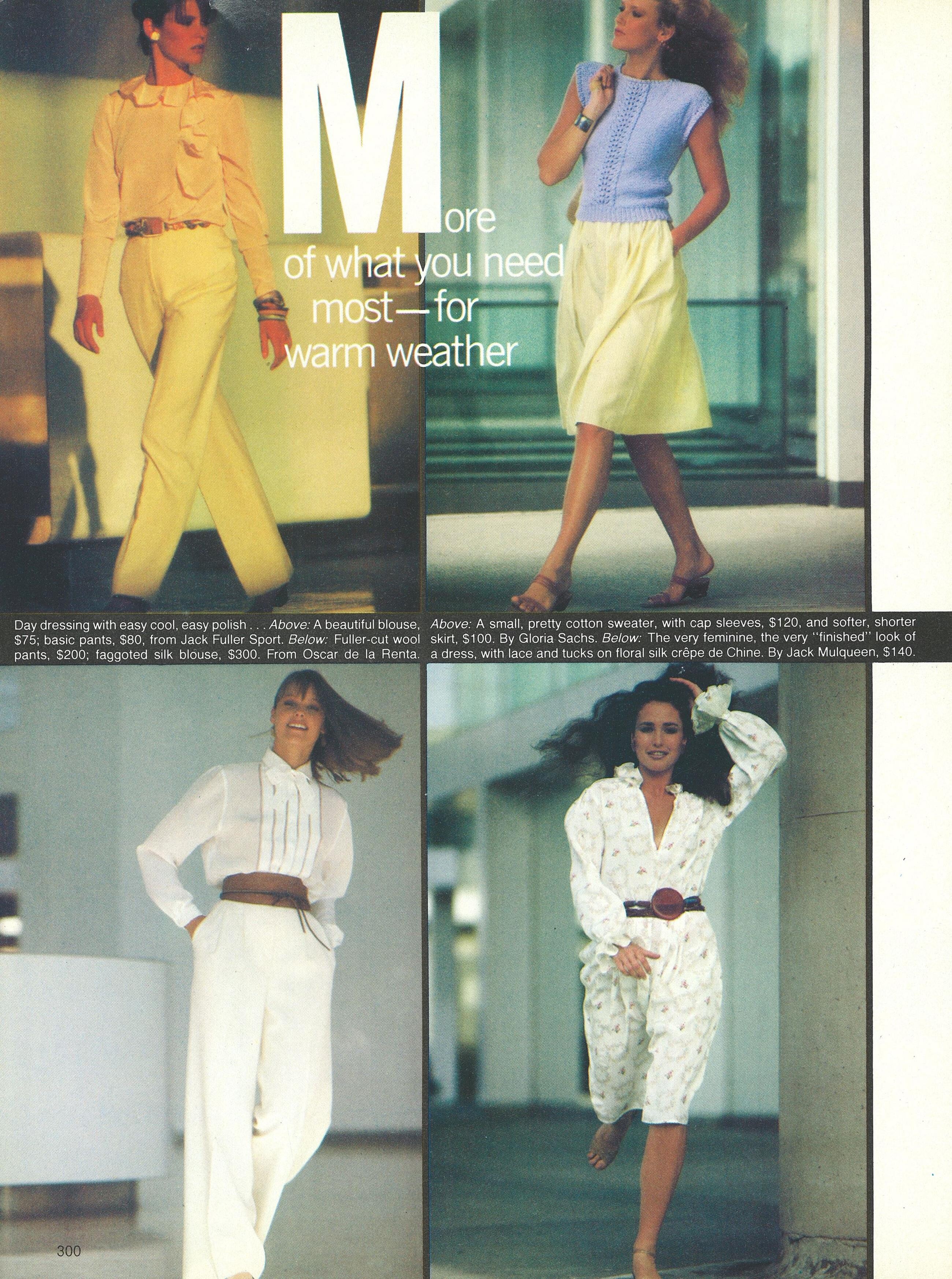 "More of What You Need Most - For Warm Weather" + Andie McDowell; Sheila Johnson VOGUE US, Dec 1980 Photographer: Ishimuro