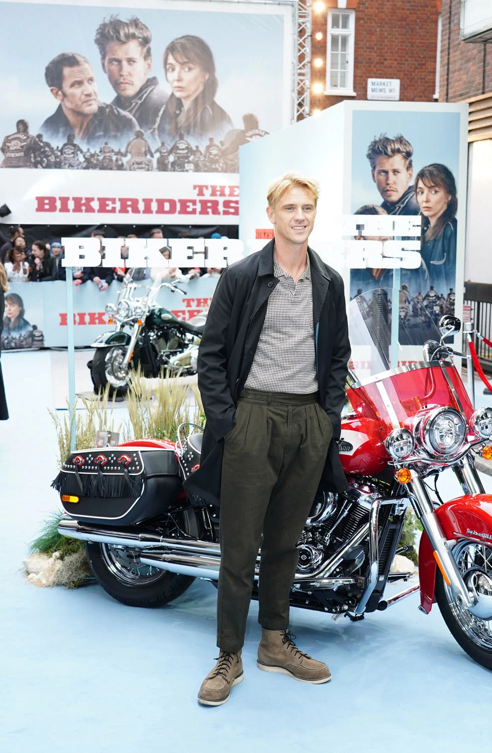 I was happy to see a request for Boyd Holbrook land in my inbox because it gives me a chance to retell the story of standing behind him in a long security line at the airport. And yes, he’s fine AF! I’d say even better than the photos (like Charlie Hunnam). A reader requested pants worn at The Bikeriders premiere. Agree, these are strong pants and it’s all down to the tailoring. Precise. Cropped enough that you can see his full shoe and high waisted with the shirt tucked in to show off the pleats. Pretty sure these are the Manny trousers from Rubinacci, an Italian brand that focuses on tailoring. They come in a bunch of different styles and at US$510, definitely an investment piece.