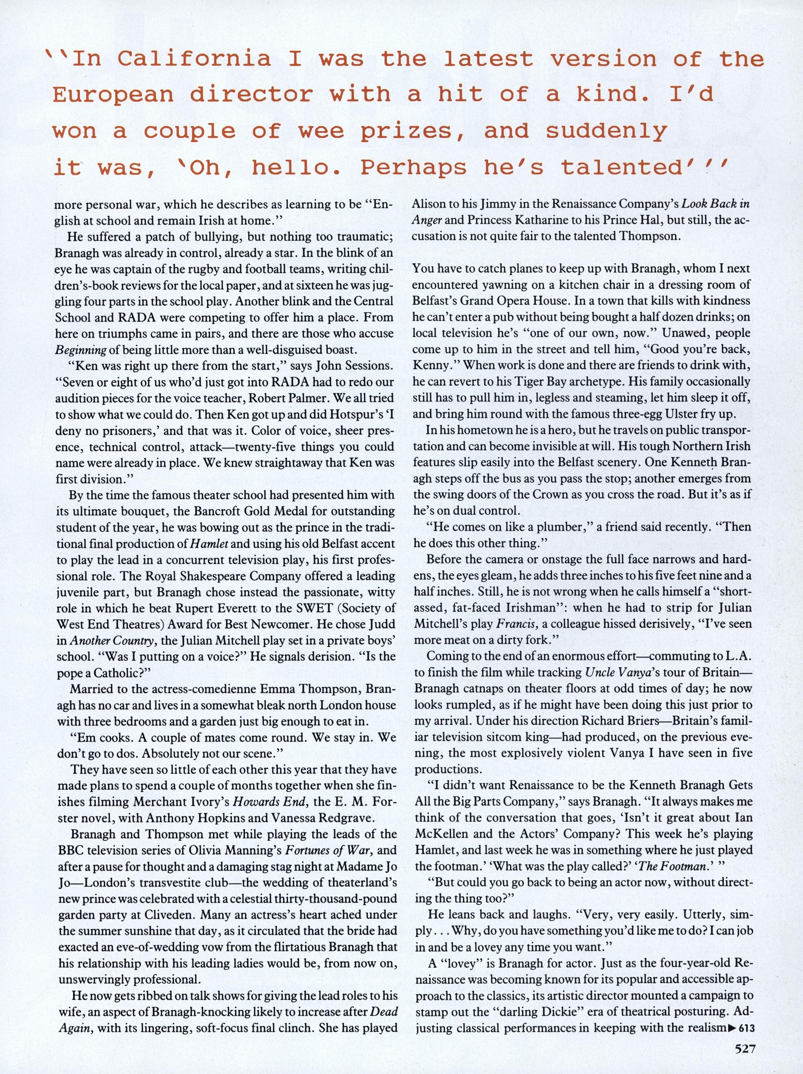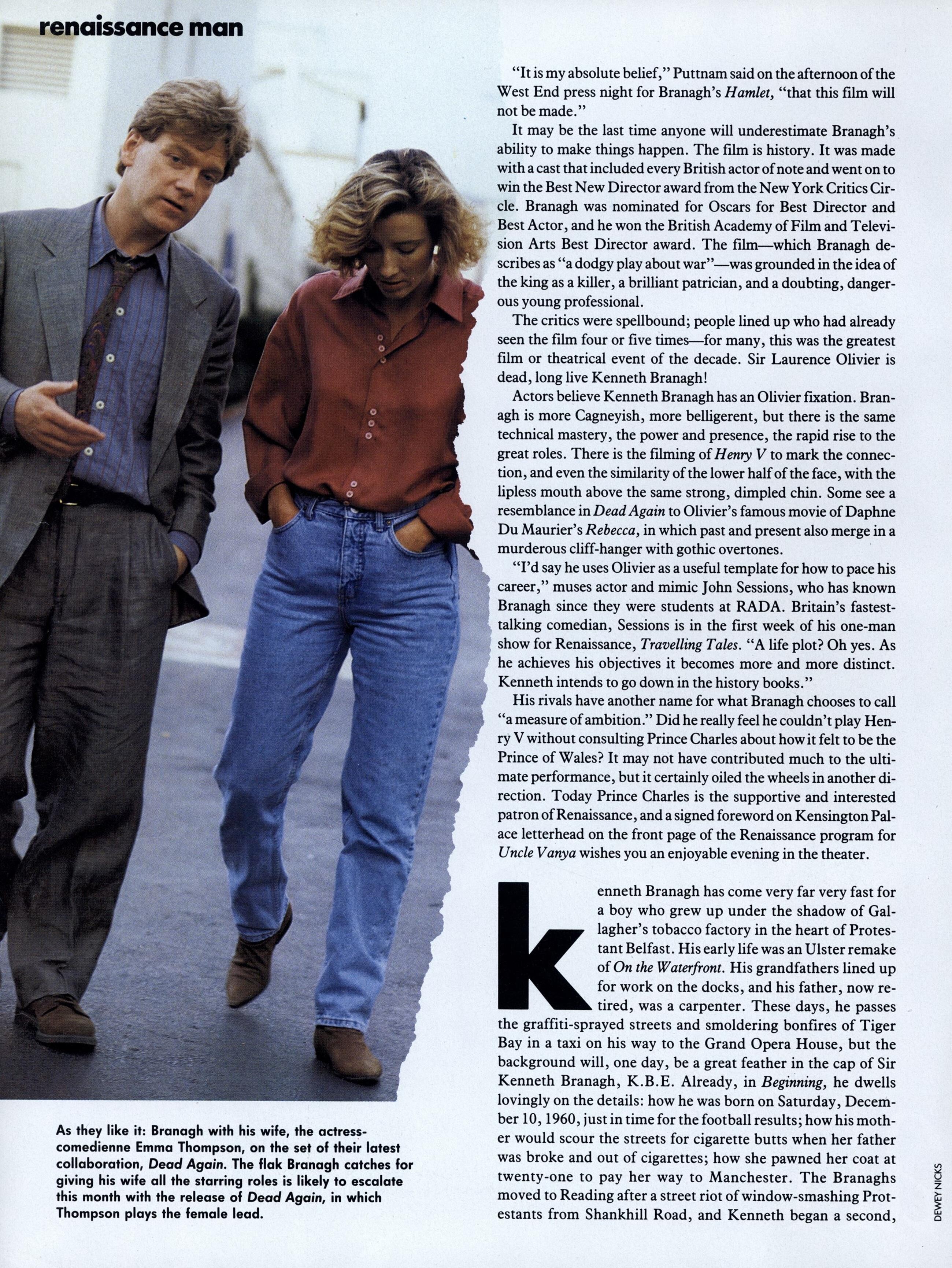 "Renaissance Man" with her husband Kenneth Branagh Photoagraphers: Lord Snowdon & Dewey Nicks
