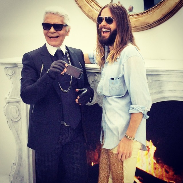 jaredleto Me and my friend - the legendary (and very funny) @karllagerfeld joking around. Yes joking around.