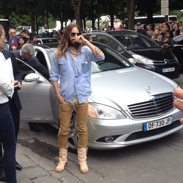 jaredleto Flowers and a note from klassy @karllargerfeld. Thx! #paris#lovelustfaithdreamstour![]()