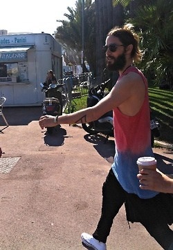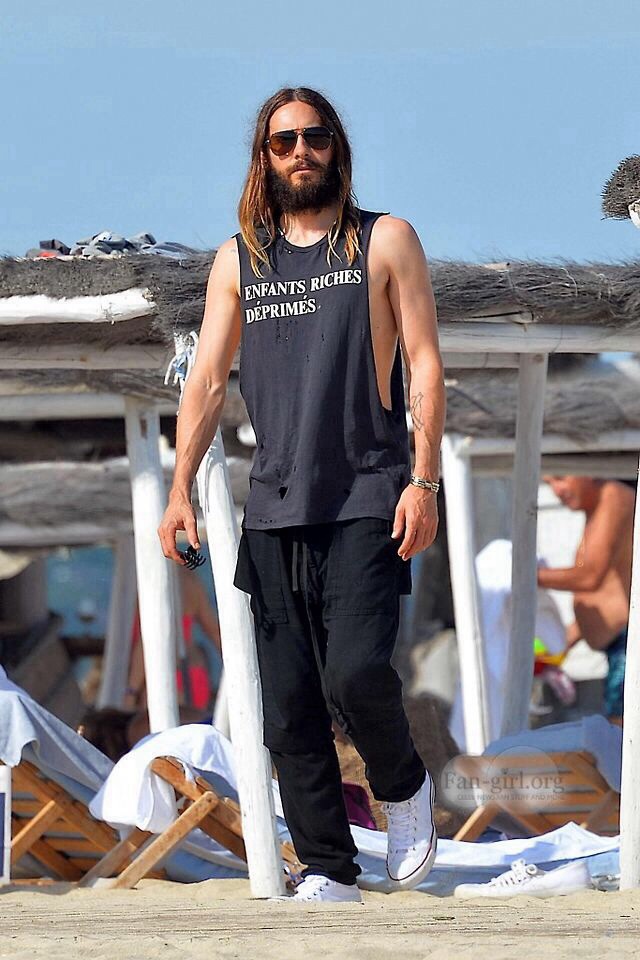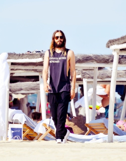 The 42-year old was enjoying a day off in Saint-Tropez, as his band Thirty Seconds To Mars have brought their tour to Europe.