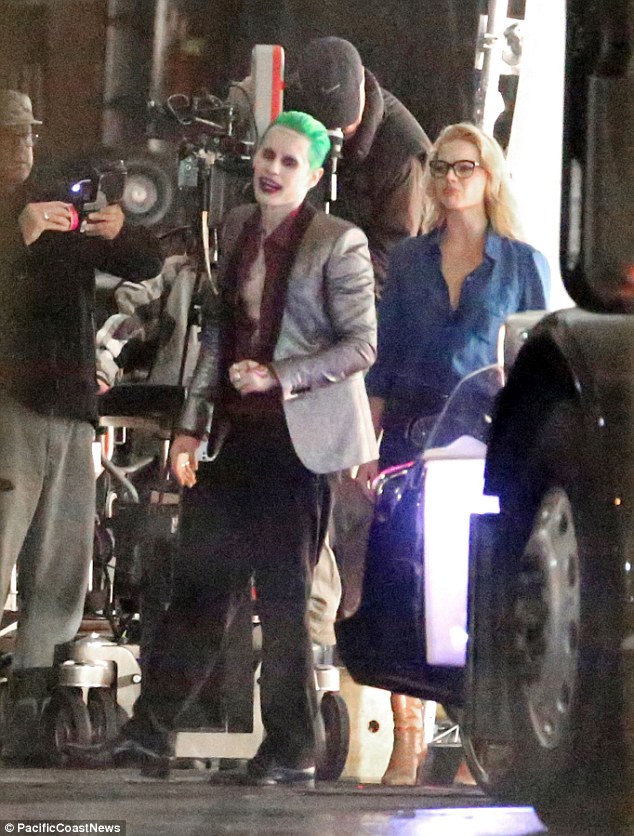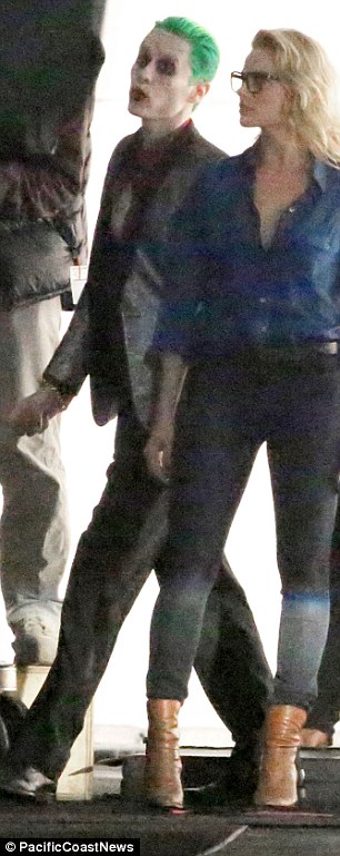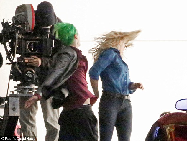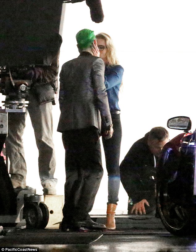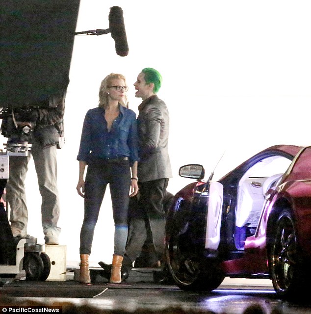 Kiss Or Kill? Margot Robbie is savagely hit by Jared Leto's The Joker before pair share a passionate embrace as they film new scenes for Suicide Squad
