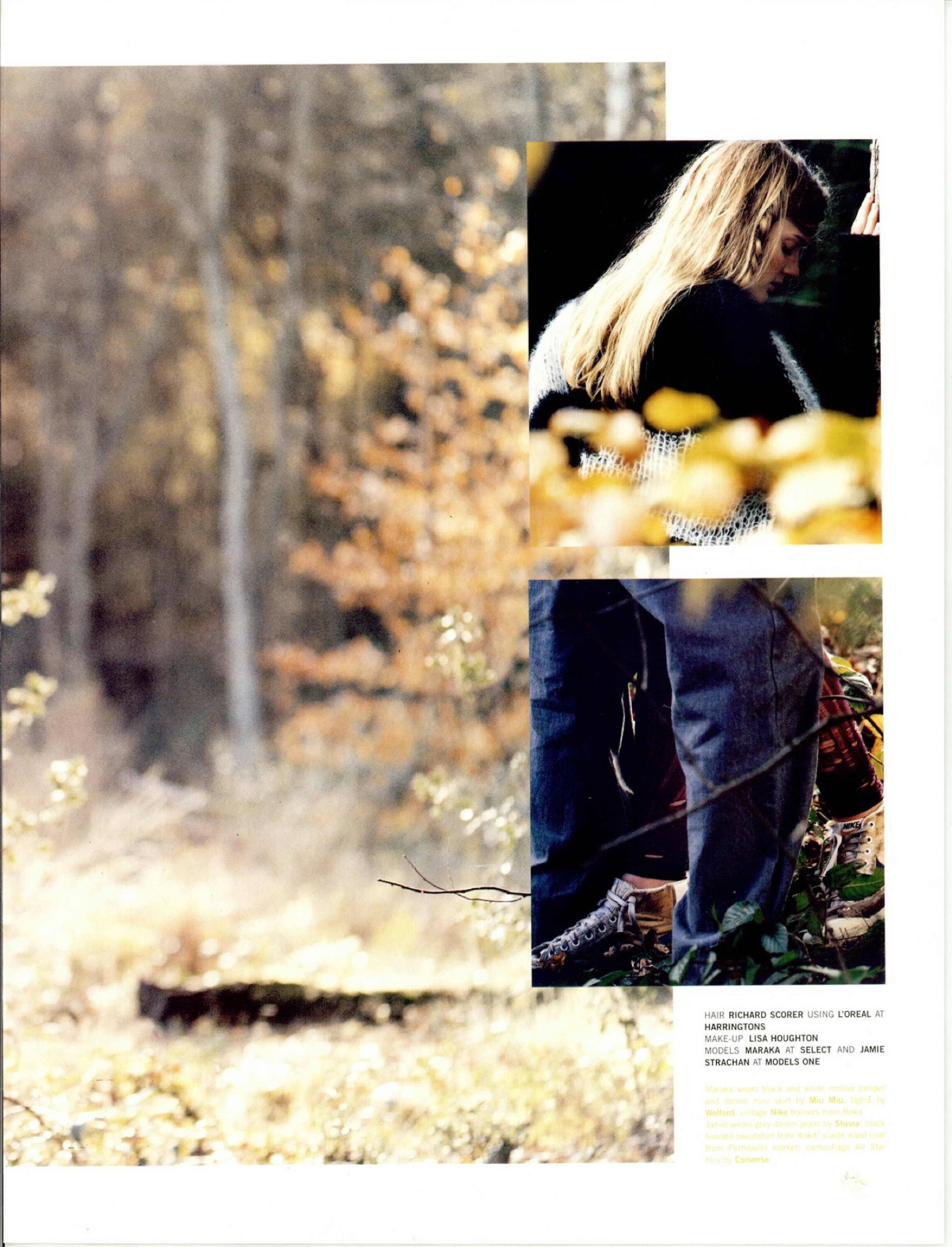 Stussy & Miu Miu Photographer: Laurie Bartley Stylist: Miranda Robson Hair: Richard Scorer Makeup: Lisa Houghton Models: Maraka Mason at Select, Jamie Strachan at Models One