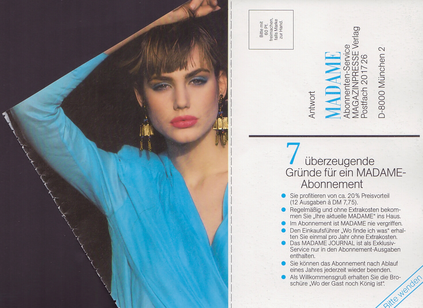 MADAME subscribing card - MADAME Germany March 1988