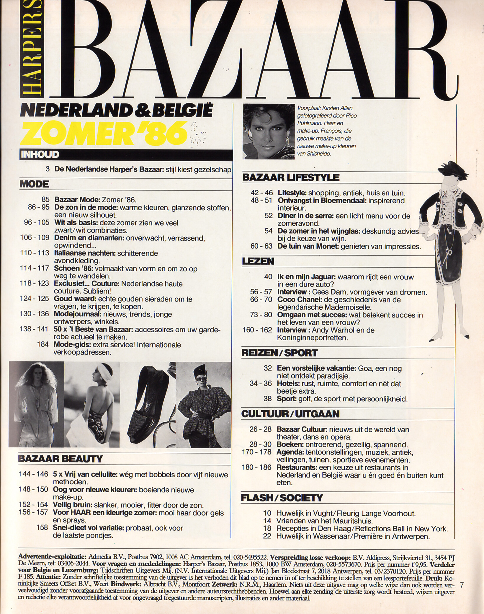 contents + "DE ZON IN DE MODE" + "BAZAAR MODE-GIDS" - Harper´s BAZAAR Netherlands & Belgium Summer 1986 by Martin Robbe - also showing Kirsten Allen, Christa Doelman, Danielle d´Haese