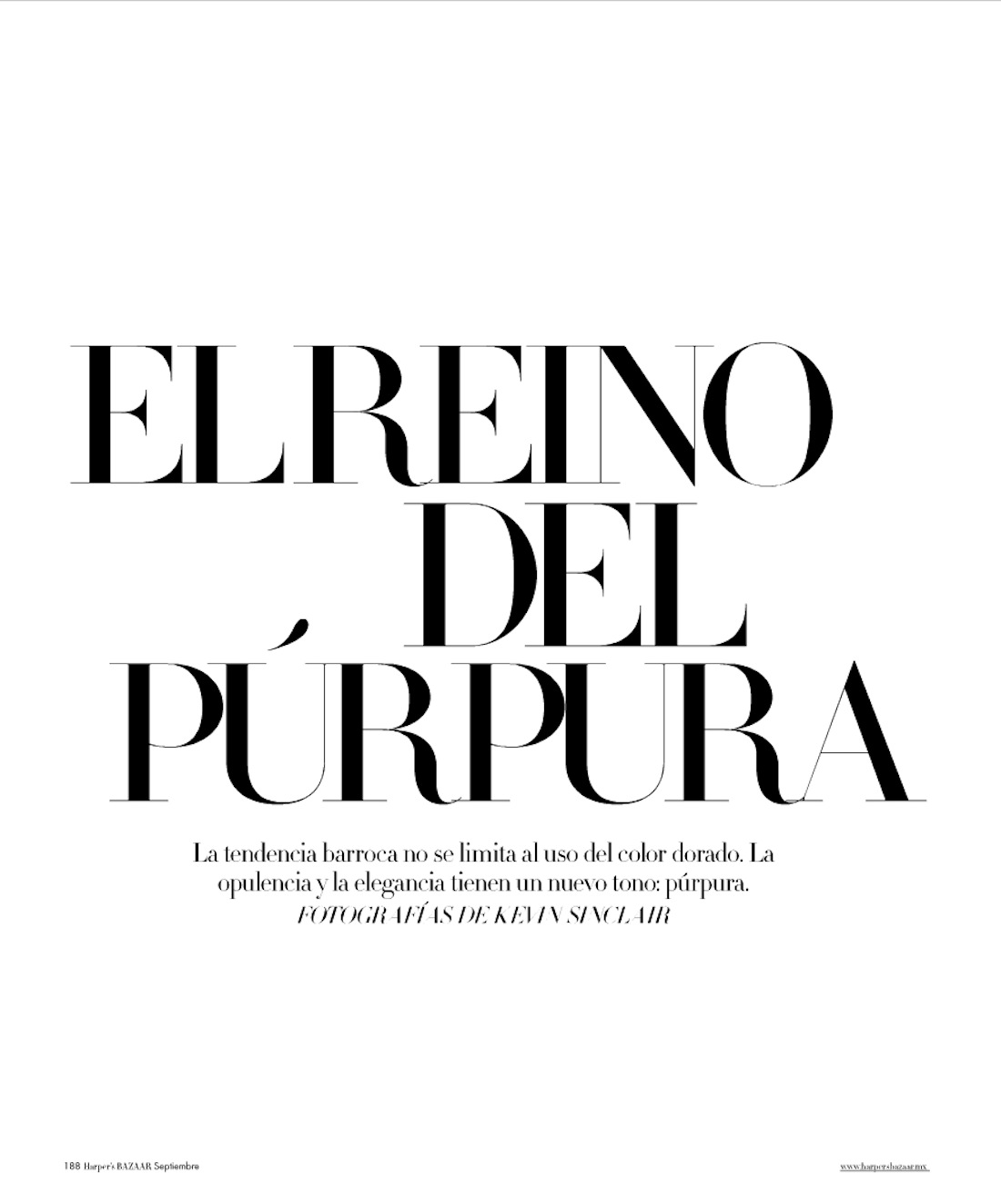 Editorial "El reino del Púrpura" ("The Kingdom of Purple") in Harper's Bazaar Mexico September 2012