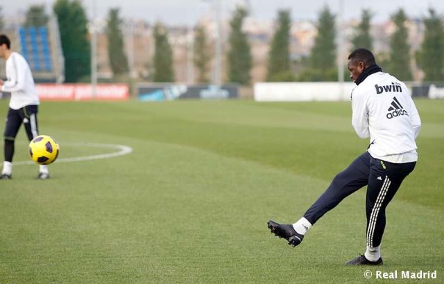 Arbeloa, DIarra and Mateos training alone. Rest of team was preparing for Villarreal.