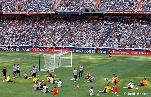 Training at santiago Bernabeu staium with 57 000 people watching