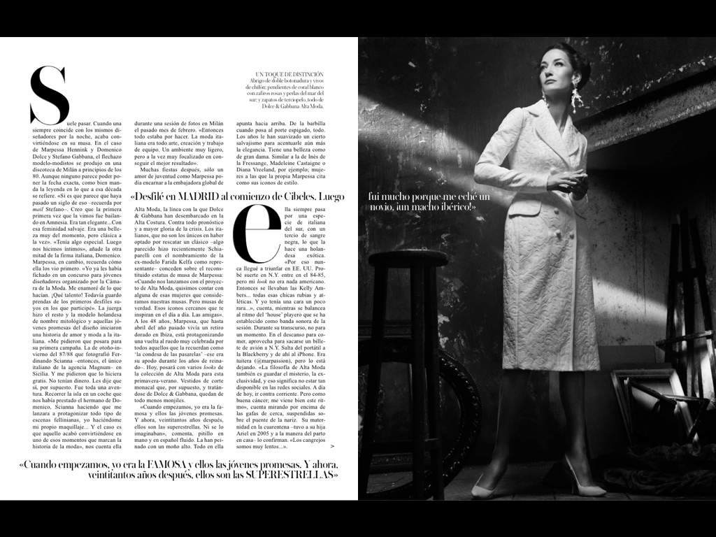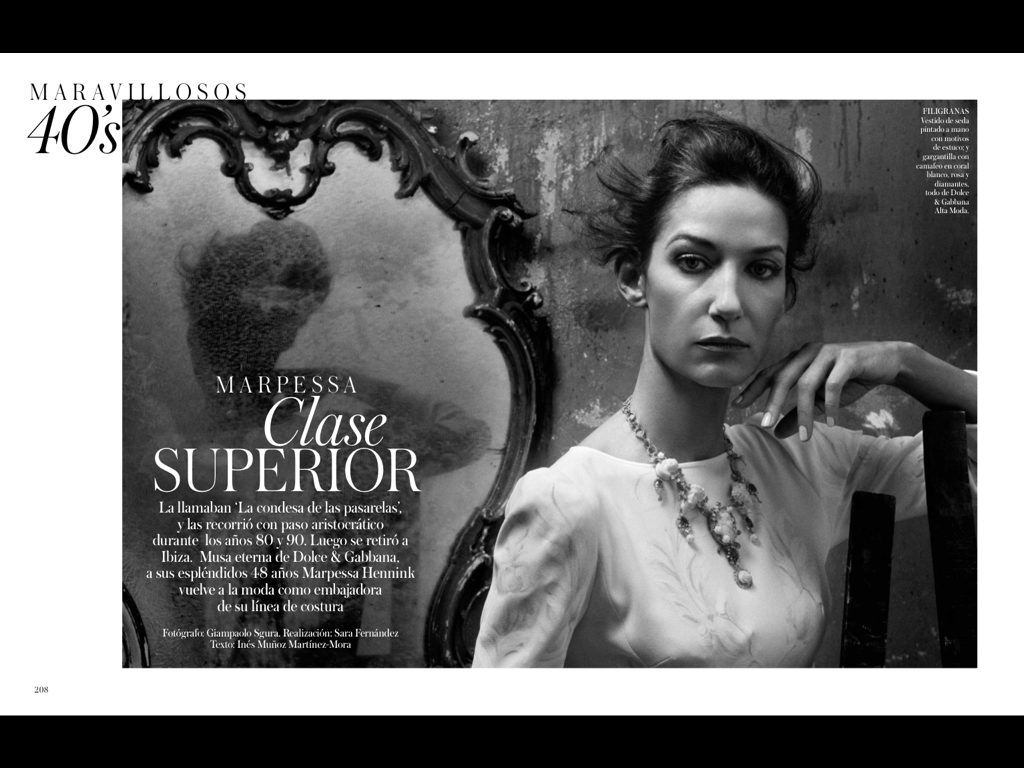 SUMMARY: They called her "The Catwalk Contessa" and she roamed it with an aristocratic gait during the 80s and 90s. Later, she retired to Ibiza. The eternal muse of Dolce & Gabbana, at the splendid age of 48, Marpessa Hennink makes a return to fashion as the ambassador of their couture line.