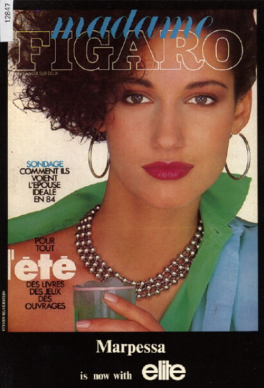 elite advertisement - select Germany 1984 #9 - also showing Joanne Russell, Iman, Joan Severance, Patty Owen, Dalma, Carol Alt, Tara Shannon, Kim Alexis, Julie Wolfe, Jill Goodacre, Stella Hall, Leza Cruz, Gunilla Lindblad