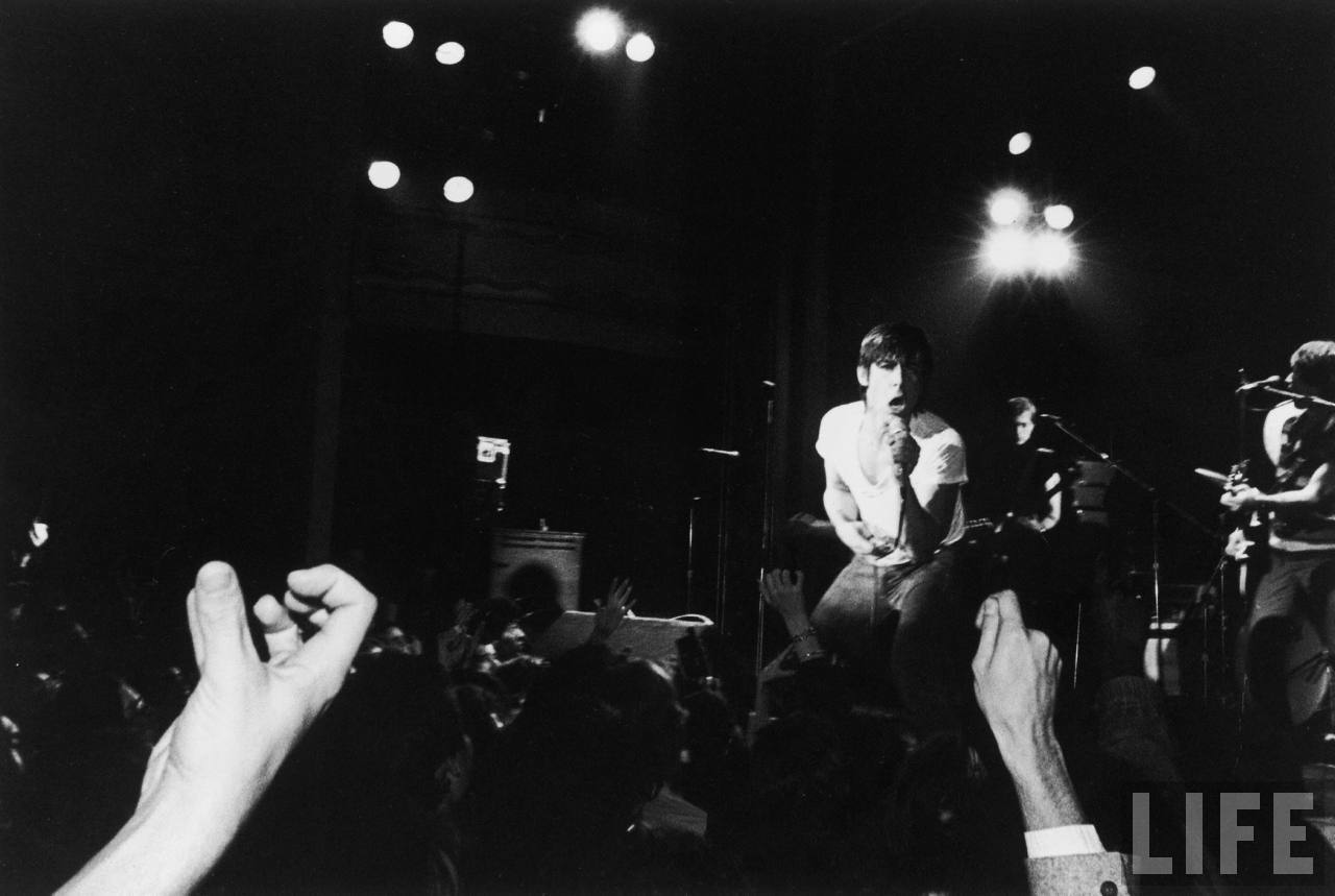 Iggy Pop was the lead singer of The Stooges, a late 1960s/early 1970s garage rock band who were influential in the development of the nascent heavy metal and punk rock genres. The Stooges became infamous for their live performances, during which it was not uncommon for Pop to consume narcotics, self-mutilate, verbally abuse the audience, expose himself and leap off the stage (thus being among the first to "stage dive"). Countless subsequent performers have imitated Pop's antics.