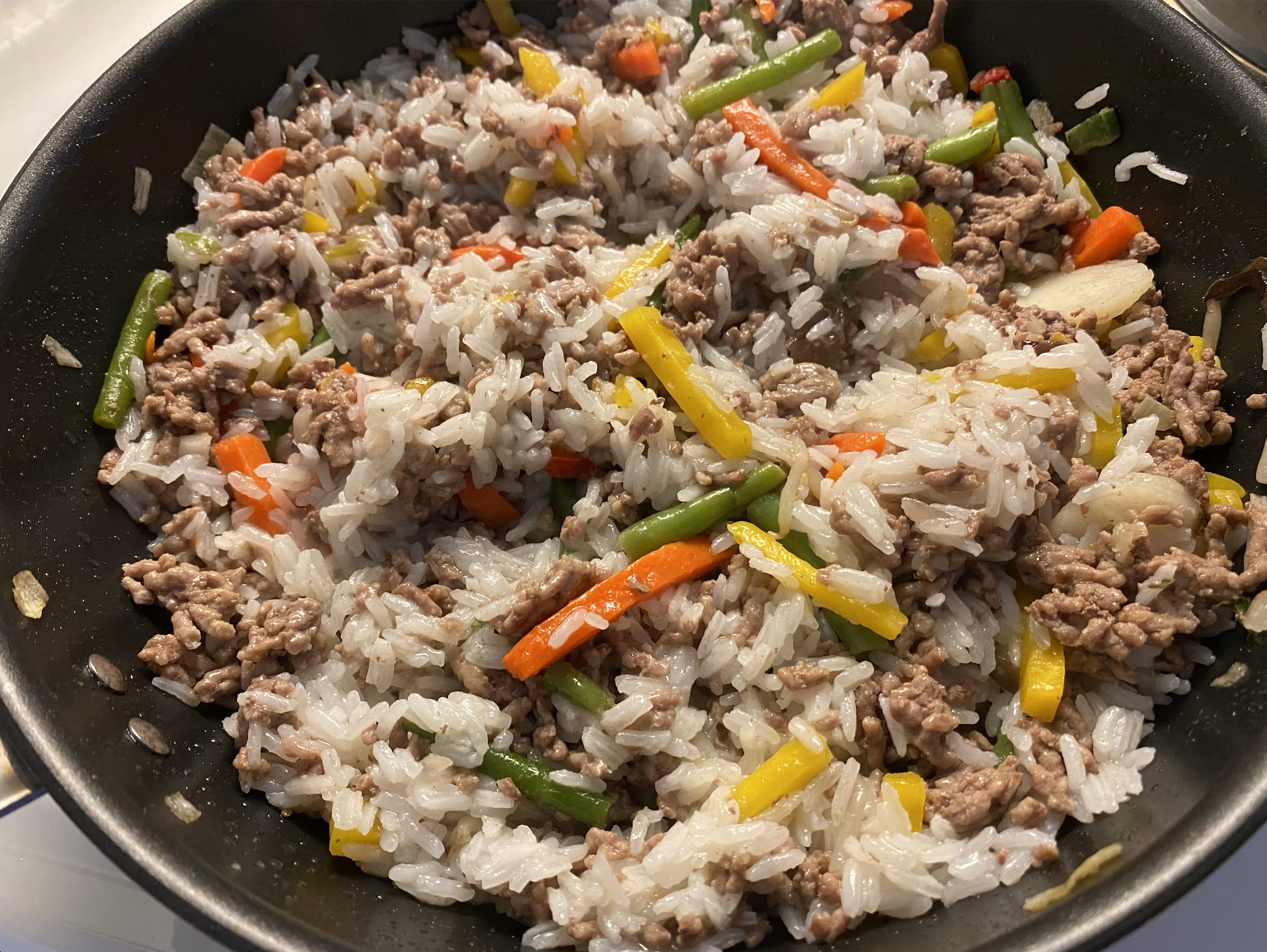 My sunday dinner was stir fried green peppers, green onions, red onions, thinly sliced pork belly, and potato slices
