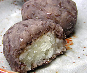 This is coarser sweet rice wrapped around red bean paste. The sweet rice itself has a special tea flavor ![]()