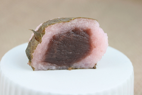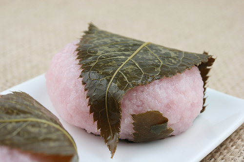 Sakura Mochi wrapped with cherry blossom leaves