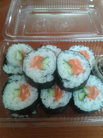 Salmon and cucumber sushi which was tres yummy and cool