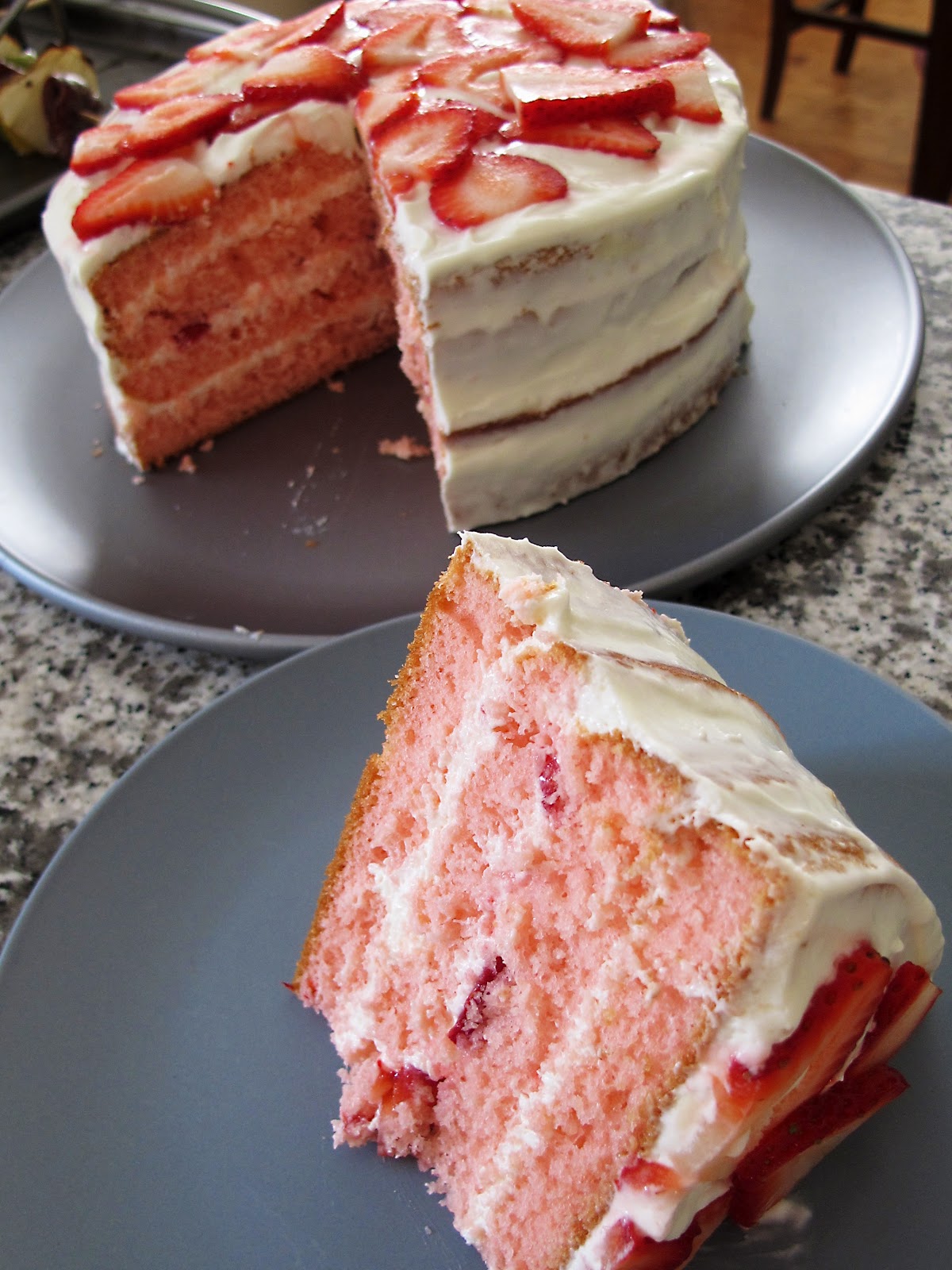 Lemonade-Strawberry cake with golden rock sugar sprinkles on top. Mine was prettier than the photo..