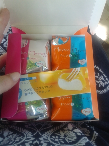When I finally reached destination I snacked into the Japanese marshmallows I got at duty free. They were some kind of luxury marshmallow, tropical and berry flavoured and they actually had little bits of fruit inside.