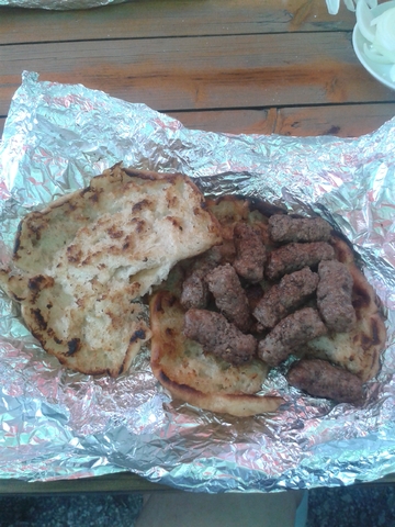 This is a Balkan dish known as "Ćevapi", it is God's gift to man, you basically get the meat (what the dish is named after) and a type of pita bread to accompany it.