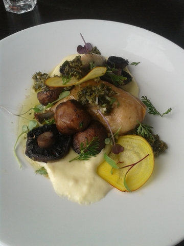 Nice house made lemonade, and the meal was a confit chicken with salsa verde, wood mushrooms and smoked potato. Possibly one of the best meals I have ever had in life.