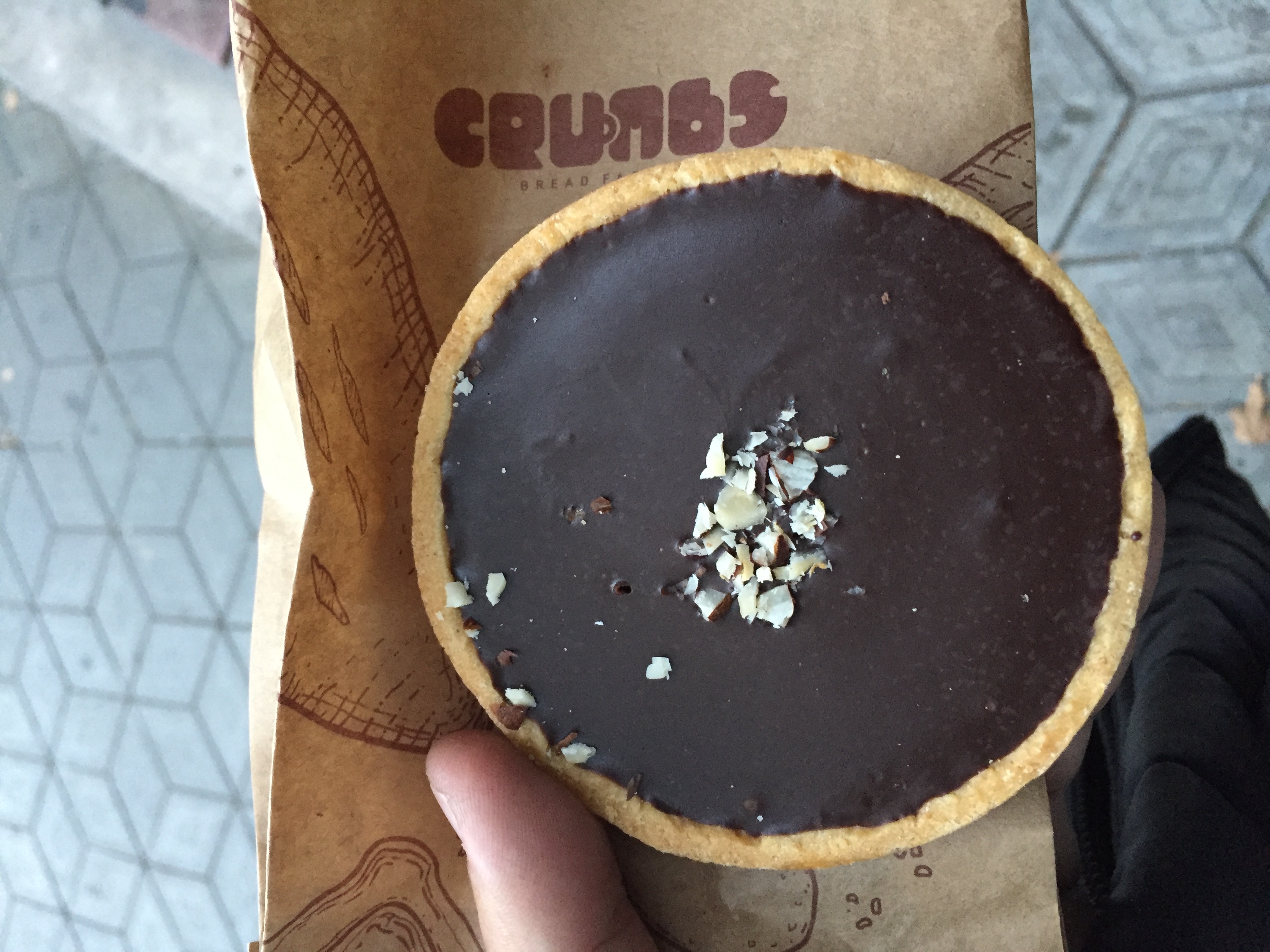 A delicious sweet treat today. An Italian chocolate pie from a place called Crumbs in Yerevan. Yerevan is very much a 1960s-80s ex Soviet city so it has that typical Soviet look to it. So all cafes and restaurants have that look but there's also a new more modern look coming in and Crumbs is one of those places. This was simply delicious.