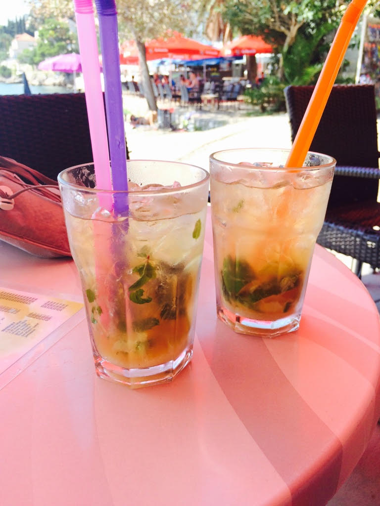 From my pilgrimage to Bosnia/Croatia, from left to right, mojitos on mojitos; shrimp on polenta. I wish I had photographed the ?evap?i?i in Mostar because it changed my life...