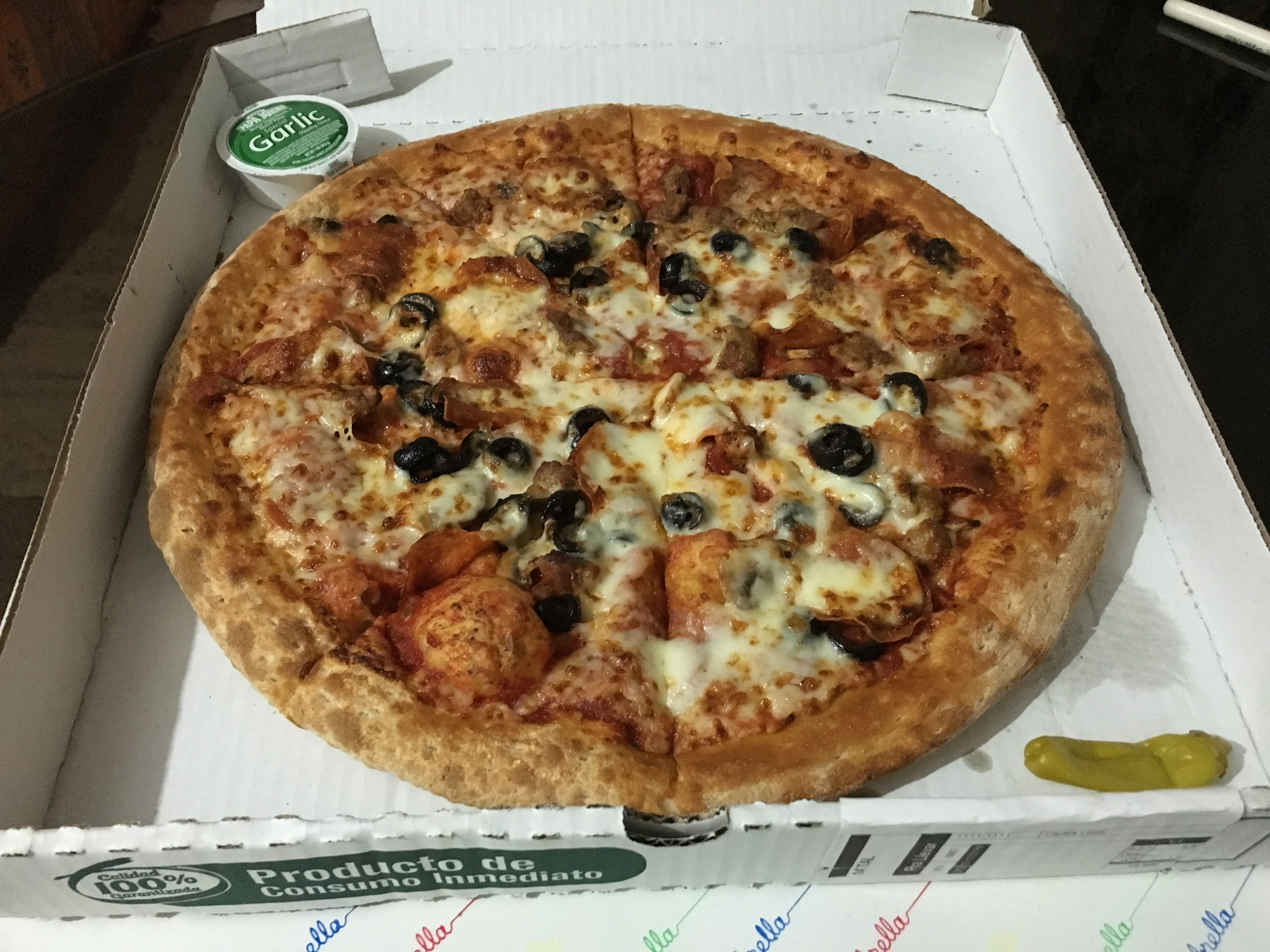 ^ On the upper left corner: 'Papa John's Special Garlic Dipping Sauce'?