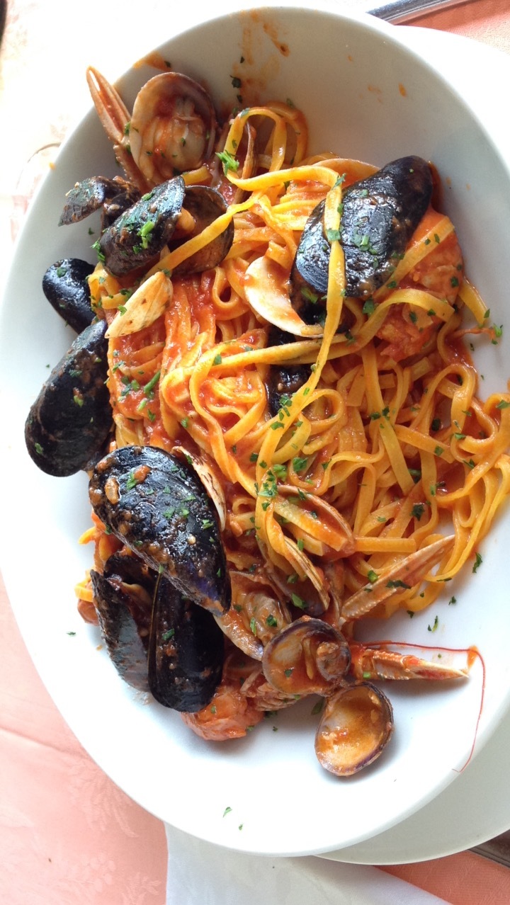 The pasta looks great but too much shellfish and stuff (I'm not a fan of those). No envy from me