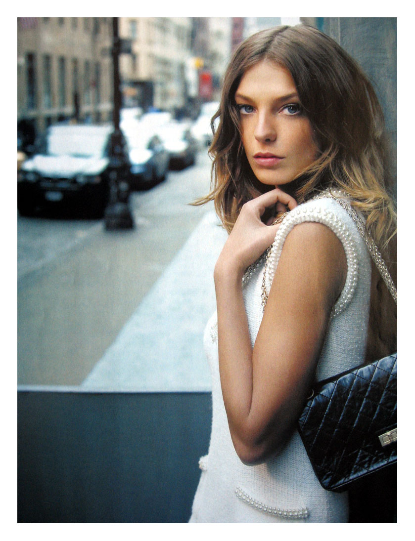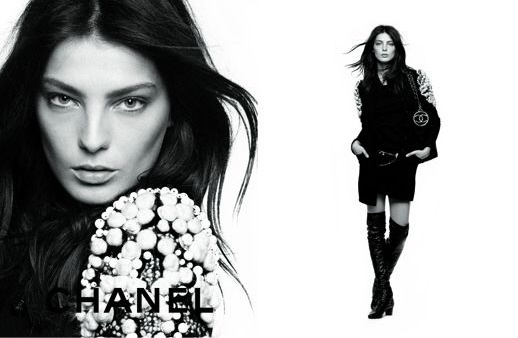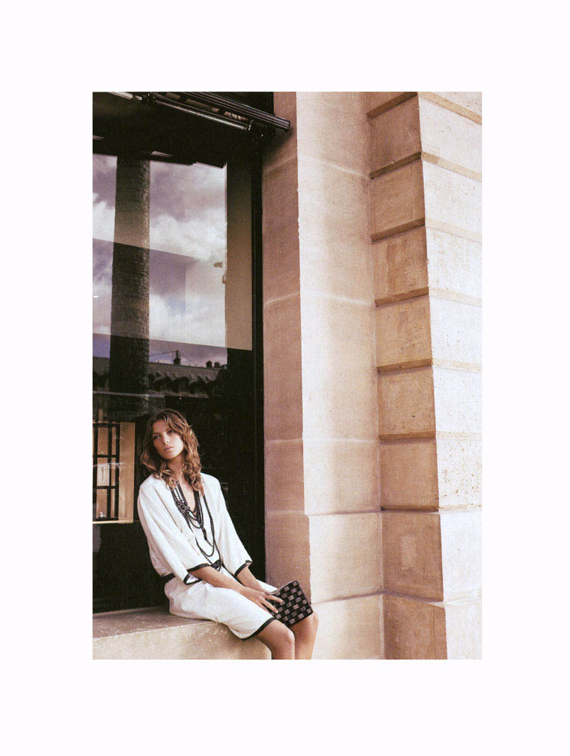 Noémie Lenoir or Laetitia Casta wearing ChanelPhoto by Mario Testino. French Vogue June/July 2008. Editorial styled by Carine Roitfeld