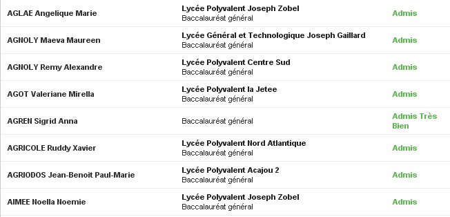 Results from Martnique => I have to check my cousins results ah ah !