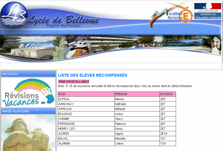 I found out she was is the same high school as my cousins in Martinique ! So searching names of my family brought to me to the website of the Lycée de Bellevue.