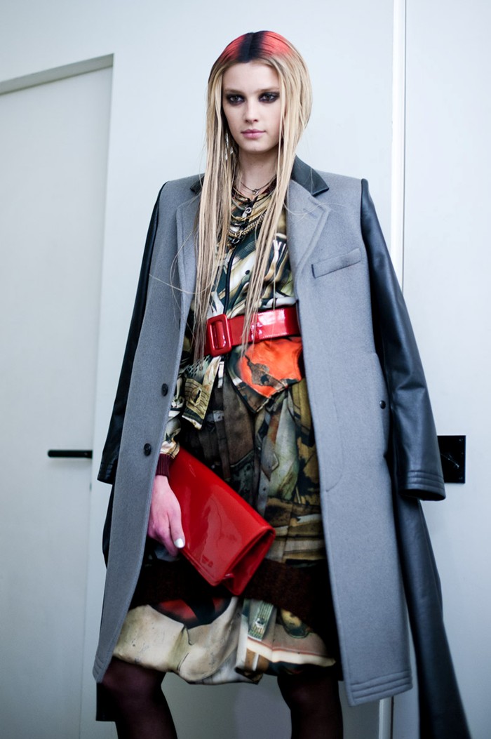 Right now she is posing for our special fashion issue. The photographer, Jan Welters, is doing some tests, some polaroids. She is serious, but a childlike joy comes over her when we have fun folding her legs in all directions like a a gifted gymnast. Her movements are natural, a little sharp, full of urgency and of life. One only needs to see her move to understand that Sigrid is a good person. I believe she was 13 (or 13 and a half) when, eight years ago, she enrolled in a contest sponsored by Elite in Martinique. At this time, she lived near Fort-de-France, where she was born, with her Swedish father and her mother from there [Martinique?], originally from Granville in Normandy. Elite published an announcement in the local newspaper and her friends told her "you should try." "I went there without much hope" she clarifies. Someone once explained to me that models are often the kind of people who, as adolescents, are totally ignorant of their beauty, who simply feel different, too tall to kiss the boys. She won the competition on the world level. Overnight, but for a good cause, she was cut off from her family, from her school, and from her friends. "Thankfully there was Facebook," she sighs, and a flash of childhood can be seen in her eyes.