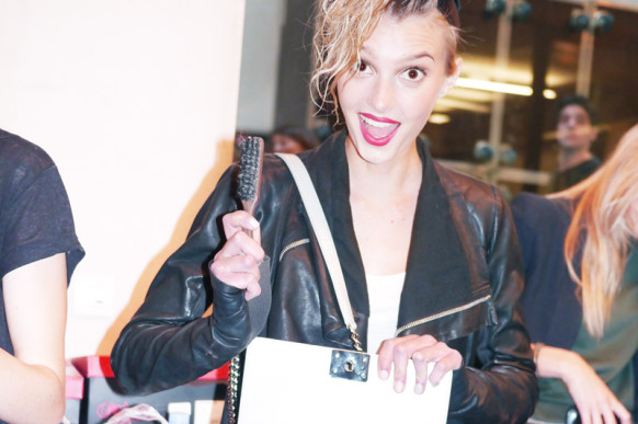 Backstage at the Jean-Paul Gaultier show two weeks ago, everybody’s favorite catwalking Frenchies Constance Jablonski (with nothing more than a Velcro roller in her hair, courtesy of Guido, preparing for her turn down the runway as ‘Jane Birkin’) and Sigrid Agren (in full ‘Madonna’ mode) were killing time with Canadian pal Alana Zimmer and yours truly when the subject of hair came up. “Well, for French girls, you don’t do anything to your hair,” Constance said. “You know what I mean?” No. “I really don’t!” She continued, “I never brush my hair—I don’t have a brush. I would never brush my hair.”